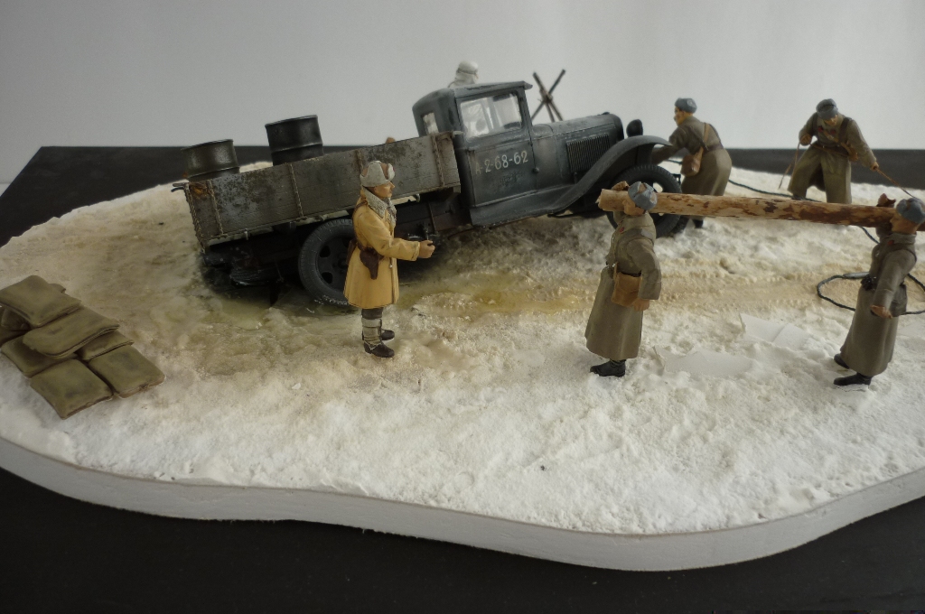 Доброе время суток! Доделал очередную диораму и спешу поделится с вами коллеги по цеху! Делал данную диораму по пожеланию коллеги, примерно повторить то что у меня уже была "внеплановая остановка" вот и исполнил что то на подобие!Скажу повторять то что было ,ТАК МУЧИТЕЛЬНО! По покраске, тамия . Снег сода. Приятного просмотра!