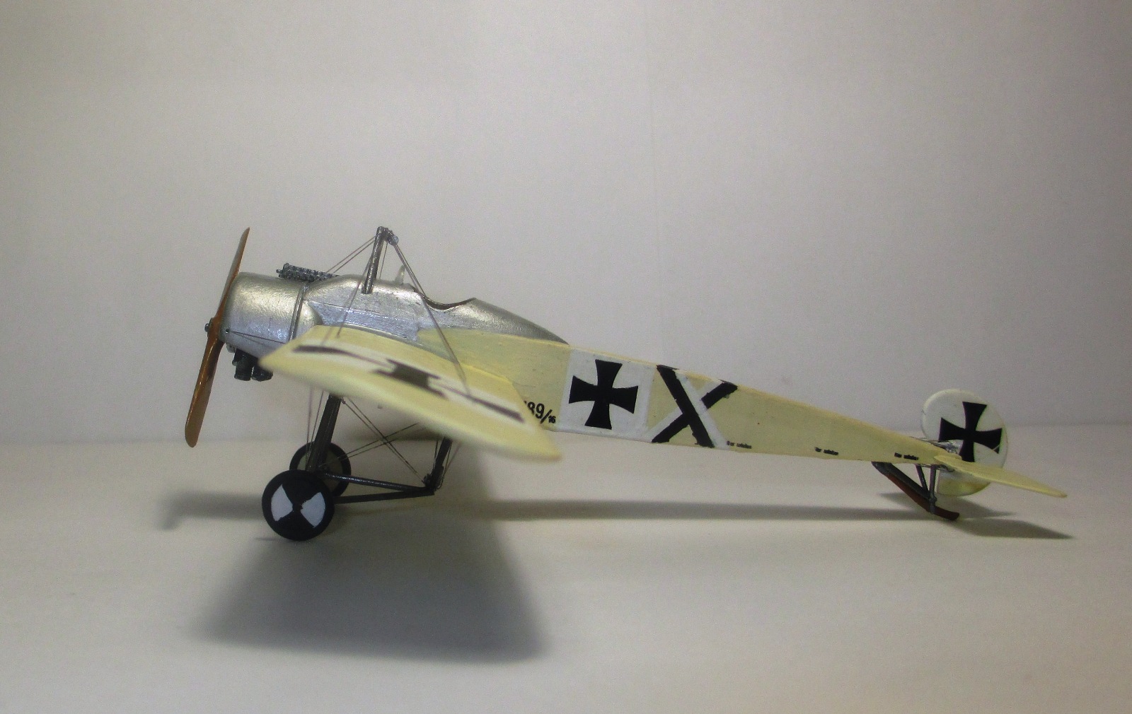 Немного о данном самолёте. Истребитель Германии первой Мировой войны. Разработан Фоккером в 1915 году. Изготовлялся самолёт с февраля по март 1916 года и было выпущено всего 49 экземпляров. Окрас данной модели - лётчик Макс Иммельман.
