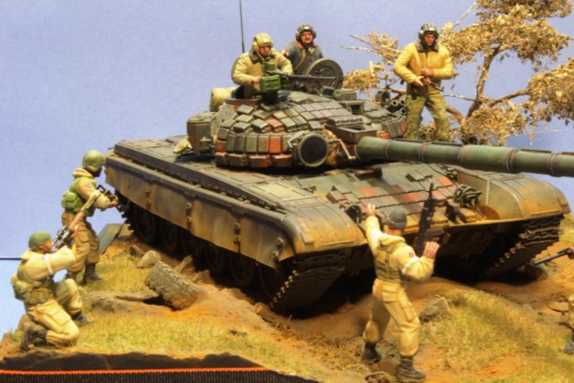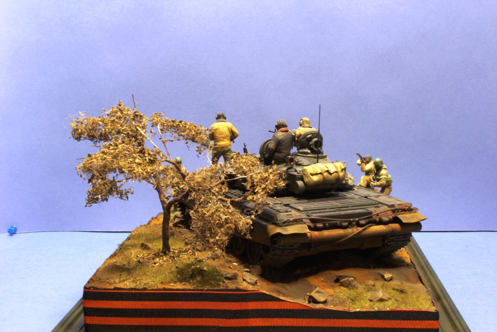Автор, простите за флуд. Диорама в принципе понравилась, хотя позы фигурок действительно странны, да и роспись 72ки всё же напоминает танки сторонников Новороссии.