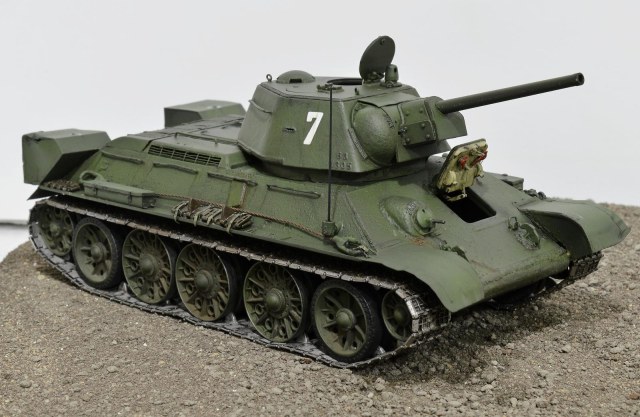 Как и многие моделисты тоже решился на 34-ку. Танк Победы, без него не обойти диораму... Представляю Т-34-76 от DRAGON образца 43-го года, так, во всяком случае, заявляет производитель, хотя у знатоков 34-ки наверняка возникнет куча вопросов. Модификаций очень много, уловить сущность реальной машины очень сложно, хотя при постройке использовал фото реальных танков именно 43-го года выпусков. Сама модель собирается очень неплохо, при этом максимально добавил фототравление Voyager, траки Мастер Клуб, башня PanzerART. Окрас TAMIYA, тонировка, пигменты MIG, AK, самодельные на основе масляных красок.