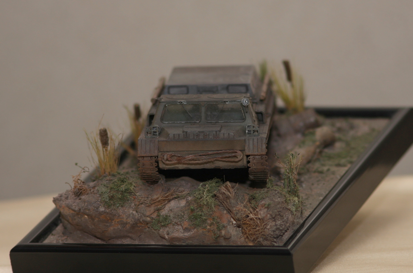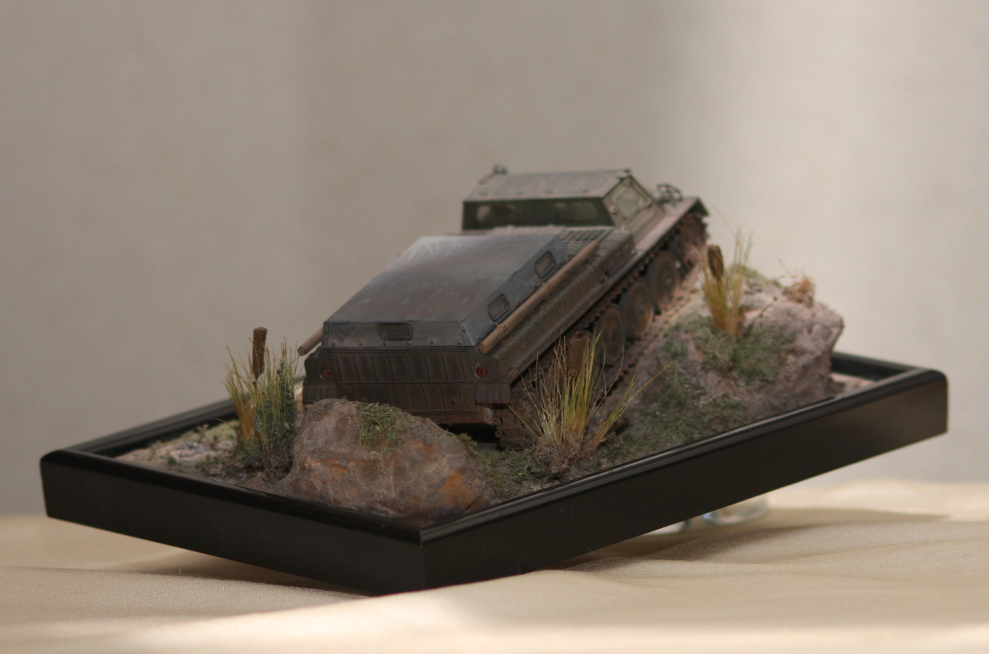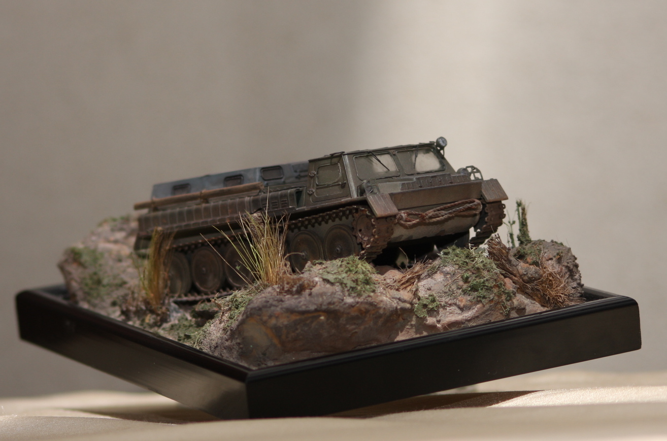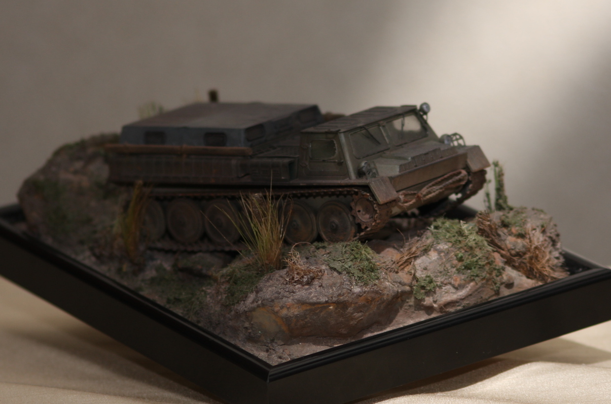 Диорама "Своя стихия" с моделью ГАЗ-71 ГТ-СМ из кита от SSM.Краски и тонировка Hobby Color,MIG,Tamiya.А так же пастель,сухой пигмент и природные материалы (предварительно обезараженные растворителем).Так как сам я из Нефтеюганска,всё детство у меня прошло с таким типом техники)).Вот и решил..