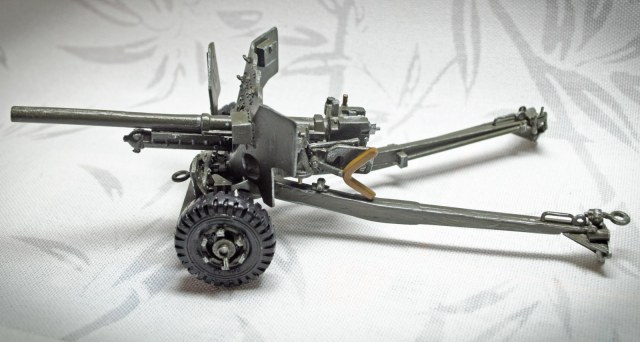 Модель собрана из коробки. Одна из половинок ствола была изогнута при производстве, пришлось использовать фен и шпатлевку :(
