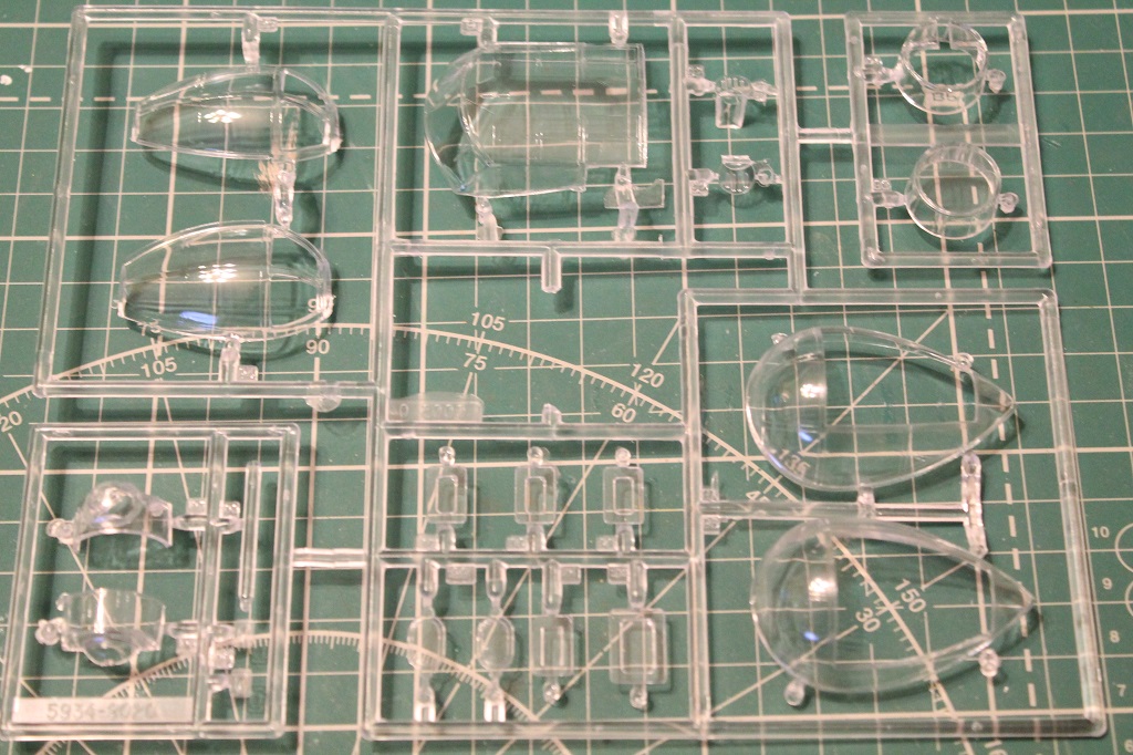 Представлен Одной прозрачной платой и четырьмя серого цвета, утяжин и следов толкателей нет, а вот небольшой облой присутствует, но не критично. Качественно проработана внутренняя расшивка, клеп, все без замыливаний и четко, конечно я не вкладывал модель в чертежи и не сравнивал пристально с фото оригинала, но на не вооруженный взгляд аппарат похож на оригинал.