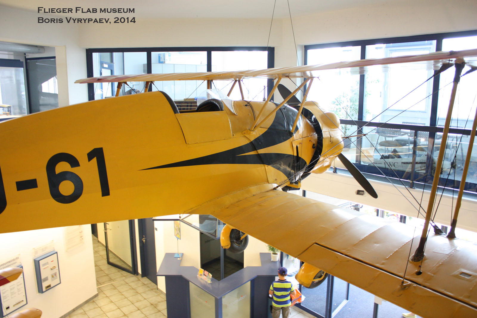 Интересно - в одном зале два одинаковых самолёта с одинаковым бортовым кодом... Один подвешен выше , другой ниже.