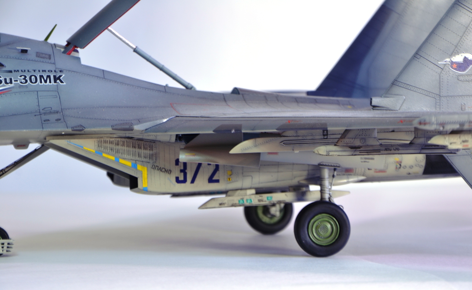 Окраска акрил Тамия, Акан, лак от Акана, Смывки Миговские, Акановские.Тонировочные пигменты от Акана. Фототравление от Eduаrda BIG ED 3299 на Су 27УБ, по этой причине некоторого травления на пилонах вооружения нет. Вооружение не подвешивал целенаправленно.