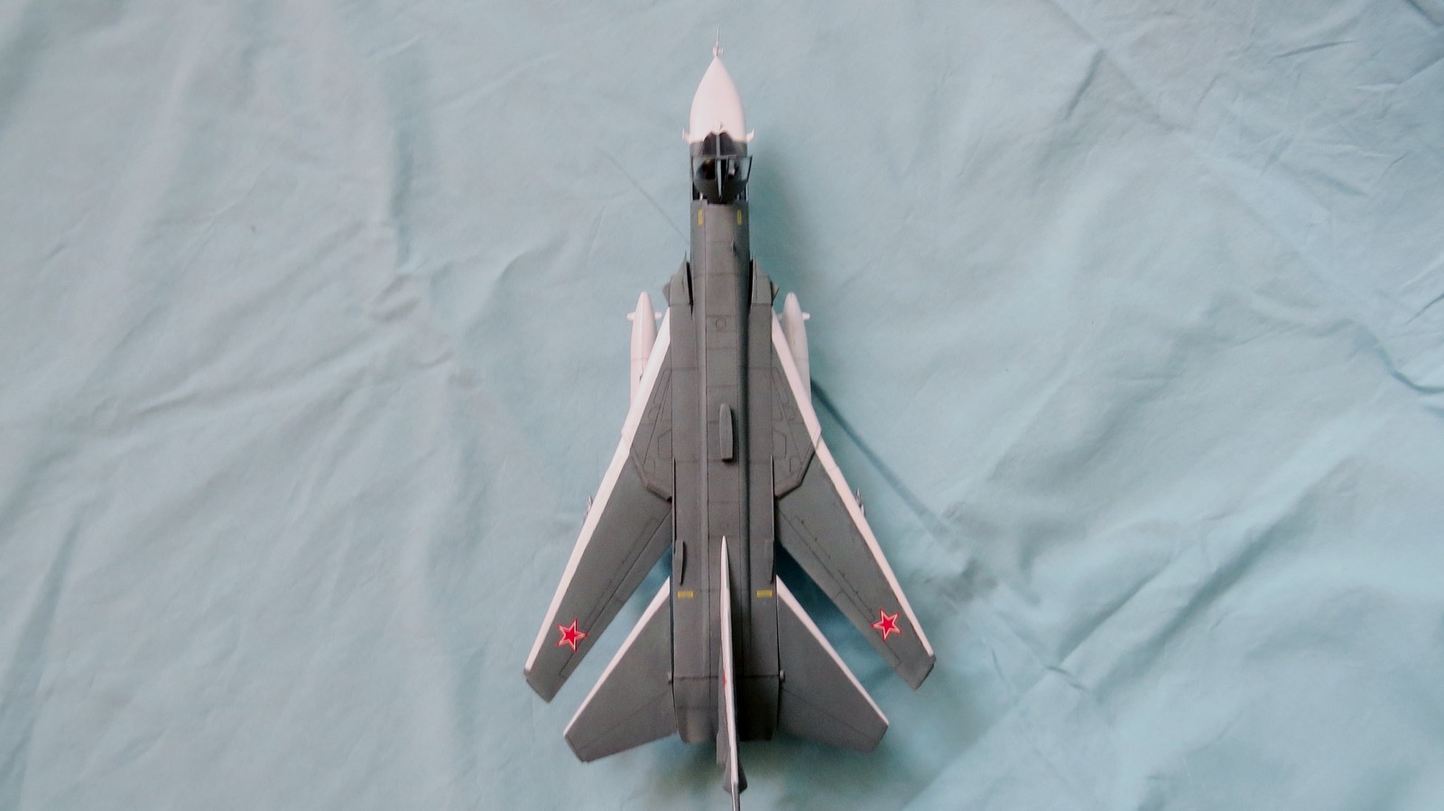 Вот совсем недавно достроил эту модель (тяжело было совмещать школу и постройку). С моделью было относительно приятно работать, особенно склеивать. С покраской немного помучился. Основной цвет был нанесён аэрографом, белые полоски - кисточкой (здесь и помаялся: белый обычный звездовский акрил закончился и купил мастер (только он и продавался) и пришлось убирать слой обычного).