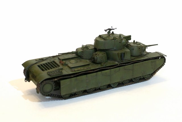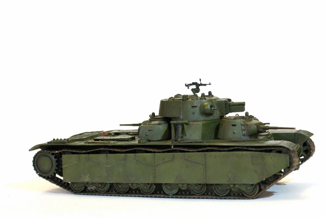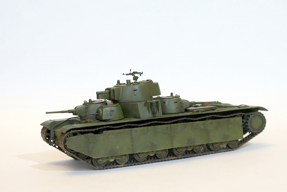 За основу был взят Т-35 от SModel. Заготовки для башен, буксирные серьги были нарисованы в SW и потом отфрезерованы на Roland-е, дальше ручками. Тросы от Eureka, пулемет от MW, турель по рисункам из обрезков пластика. Впрочем, весь процесс был изложен здесь:
