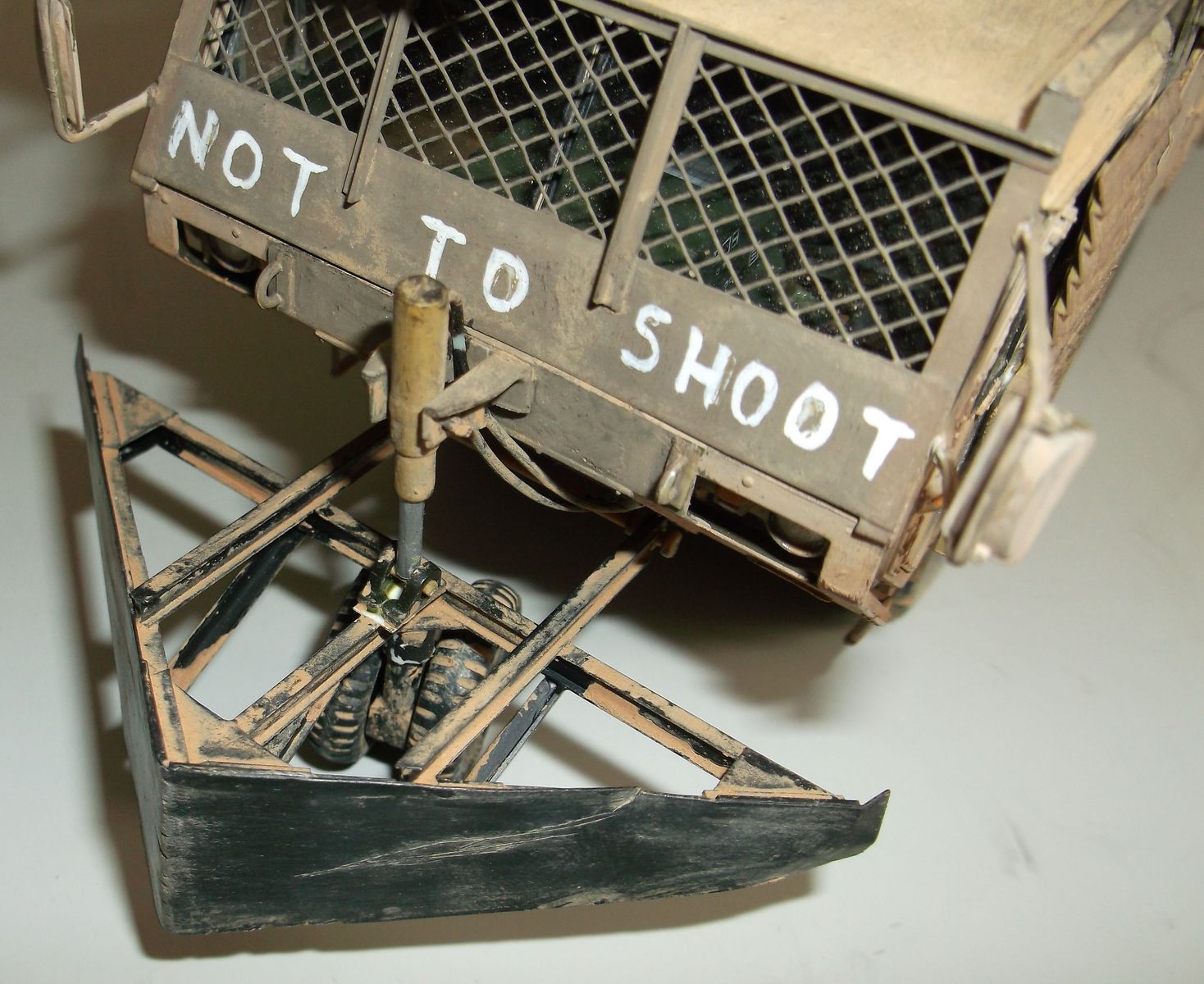 Эти вопросы мне хорошо знакомы (не первый раз задают). Маленькие колёса под отвалом разгружают гидросистему привода оного. Зенитка на корме установлена по образу вьетнамских гантраков. И стоит она на всякий случай. Основная задача этой машины доставка исследователей на место и обеспечение их работы. А безопасность осуществляют специально для этого предназначенные боевые машины (скоро покажу).