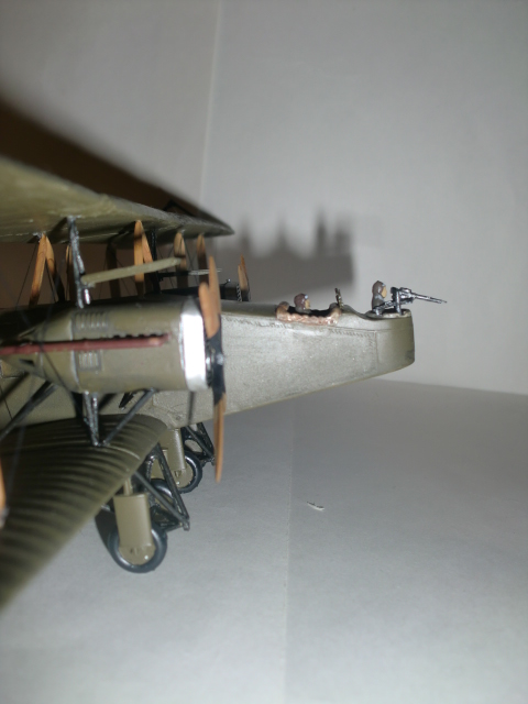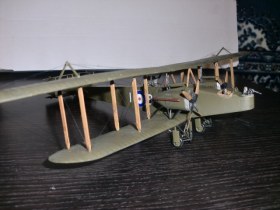 День добрый, представляю вам модель тяжёлого бомбардировщика первой мировой. Данный аппарат я собирал на работе.покраску производил благо уже в домашних условиях, могу сказать то что модель получается громадных размеров и рядом со своими собратьями смориться весьма и весьма внушительно. Сборка без особых проблем, правда пришлось повозиться с фюзеляжем так как он не хотел чётко стыковаться,одна половинка была на мм больше другой. В наборе порадовал экипаж, позы живые и не забитые, вообще не люблю усаживать людей в самолеты а тут очень захотелось.