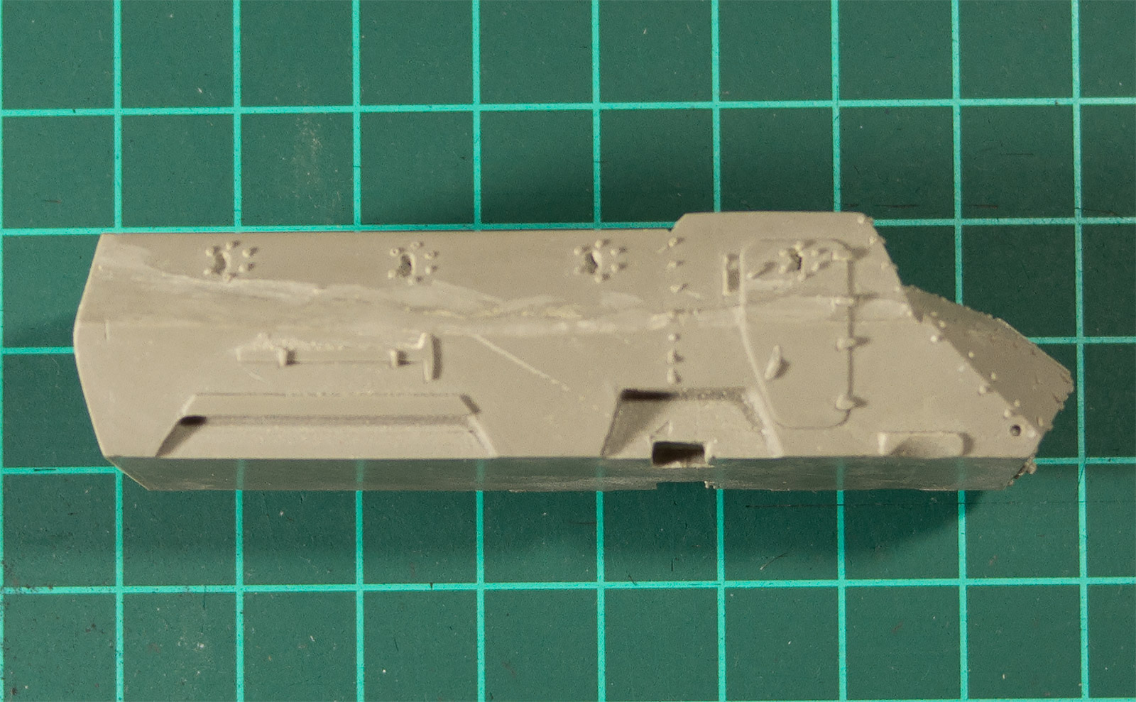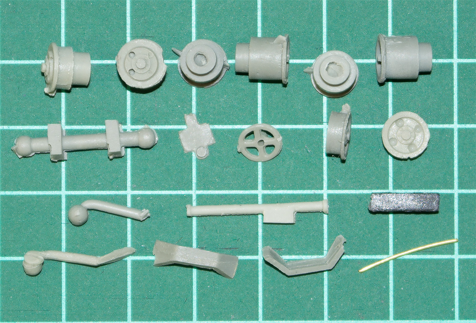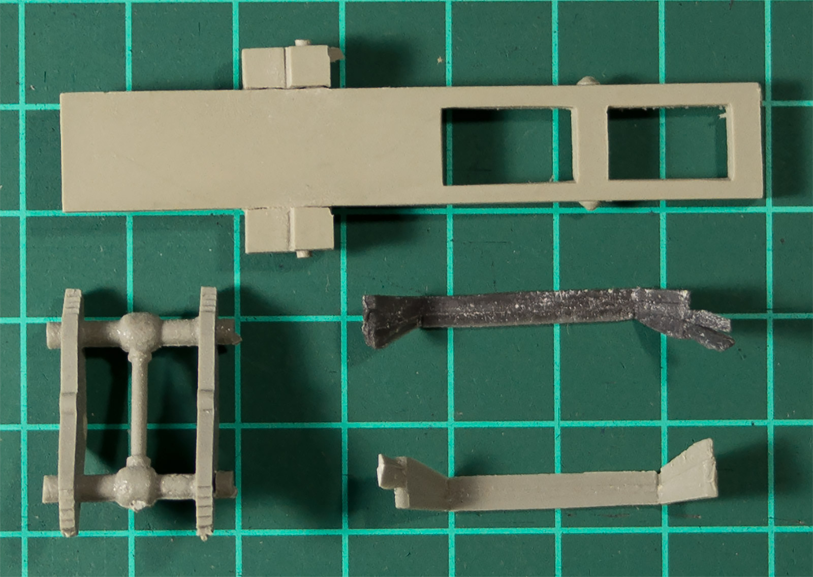 Смоляная часть для смолы более-менее нормальна, есть и сколы, и облой, но терпимо. Не понравилось, что вместе с корпусом отлит ивесьма схематично изображённый шанец, 100 % на стачиваине. Но несколько деталей (в частности, крыша) сделаны из непонятного матеала, на ощупь похожего на полиэтилен. Мало того, что оны все в неровностях и царапинах, так и непонятно (если это действительно полиэтилен), как они будут клеиться\шпатлеваться\краситься.