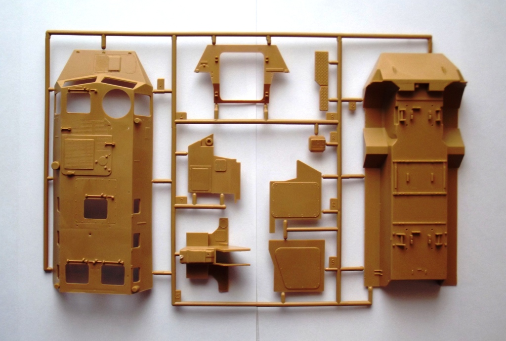 О модели; в коробке с верхней загрузкой (почему то коробка больше чем следовало, много пустого места) находится запаянный пакет с четырьмя литниками песочного цвета (два из них одинаковые), один прозрачный литник, и четыре резиновых колеса. Литники неплохого качества, детализация нормальная, смещения пресс форм не обнаружено, облоя не много, про стыкуемость не скажу, не проверял. прозрачный литник со стёклами, фарами и...дверями ! (для меня лично это что то новое), с одной стороны это хорошо, не придётся отдельно в двери вклеивать окна :) лобовые стёкла уже с отпечатанными дворниками, что по моему мнению не есть хорошо. Колёса выполнены из мягкой резины, качество по моему, неплохое. Так же в коробке имеется подложка с декалями и инструкция по сборке и окраске. Инструкция на 20-ти страницах, на первых двух страницах на нескольких языках (русского нет) описание БТР. Далее идет "комикс"по сборке и окраске модели, по картинкам всё ясно и понятно, предлагается два варианта окраски. Набор предполагает сборку БТР с полным внутренним интерьером. Про матчасть судить не берусь, не спец в этом ;) Цена набора 1250 руб. Спасибо за внимание, приятного просмотра.