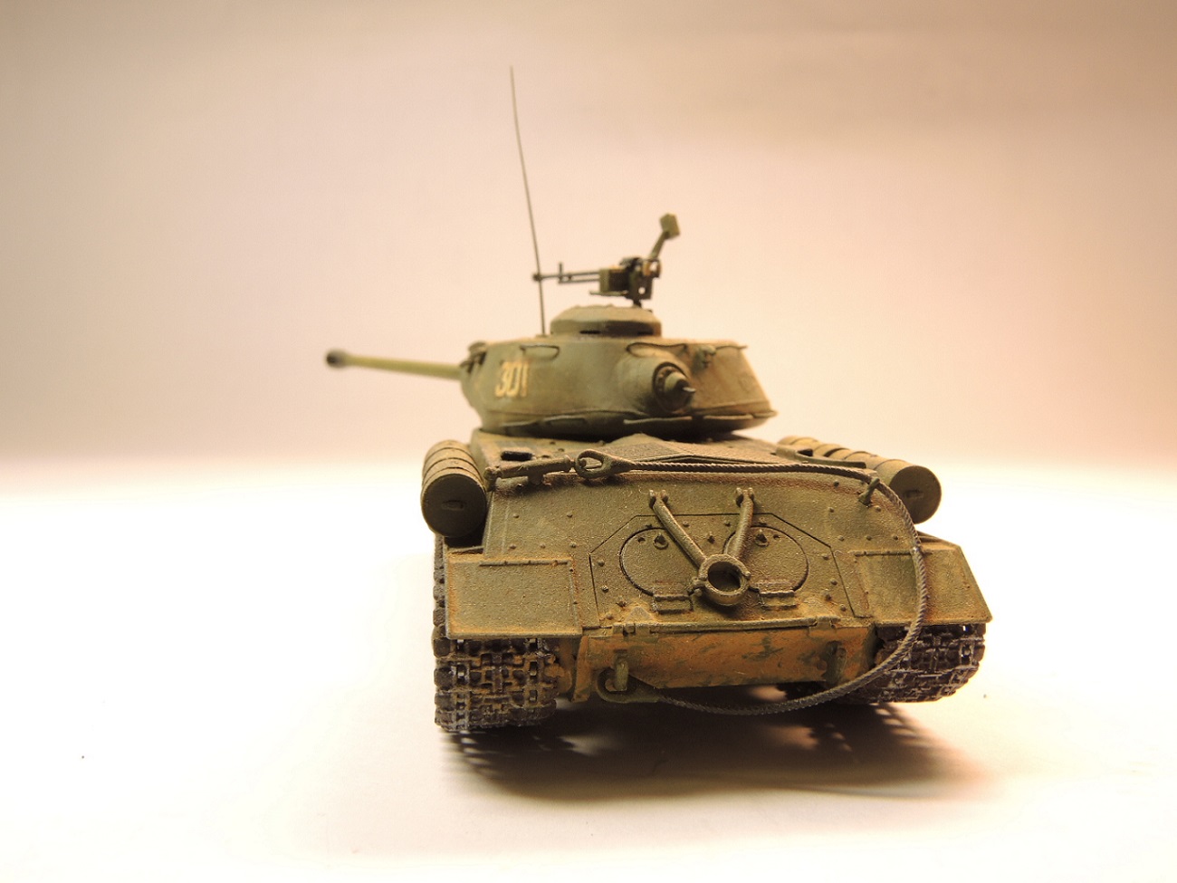 В цело очень неплохо. Сколов бы немного, пошарпанности, смывочку чёрную. На левом борту башни цифра три поплыла, основа декали (не знаю как правильно называется) хорошо просматривается, фото темноватые. Мне кажется модель не дотягивает до галерейного уровня ИМХО.