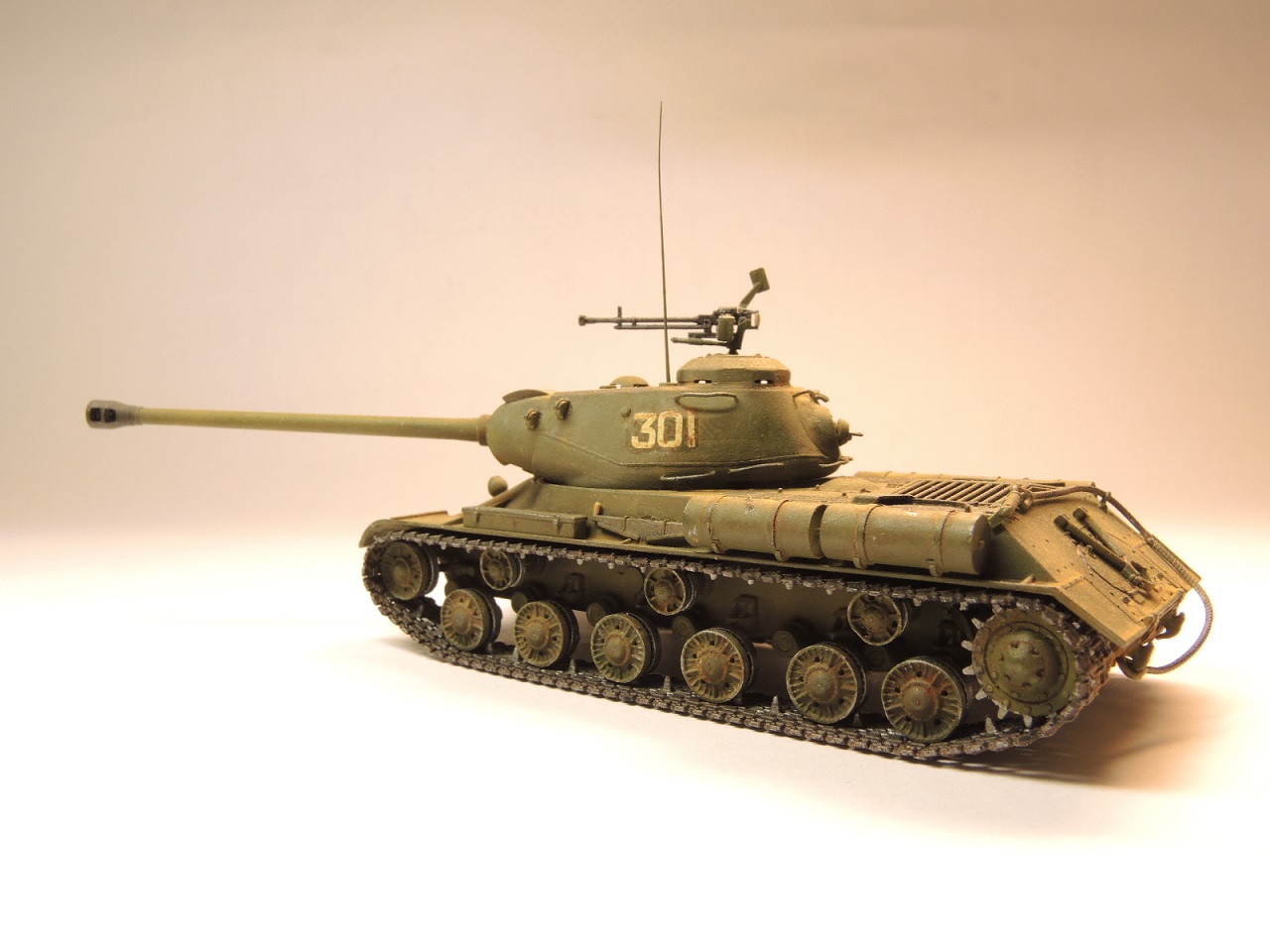 День добрый! С учетом масштаба здорово получилось, однако присоединюсь к коллегам в части контрастной смывочки, ну очень проситься))) Сам в данный момент пилю ИС, только в 35 масштабе. В 72 модель много лучше, хотя по матчасти тоже косяков хватает, но это к производителю)