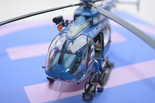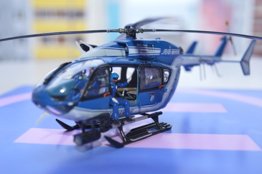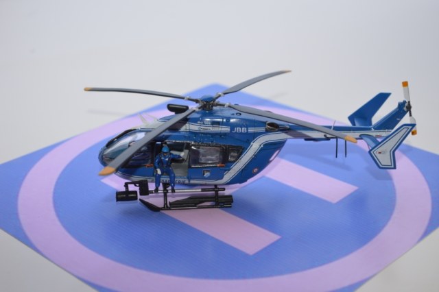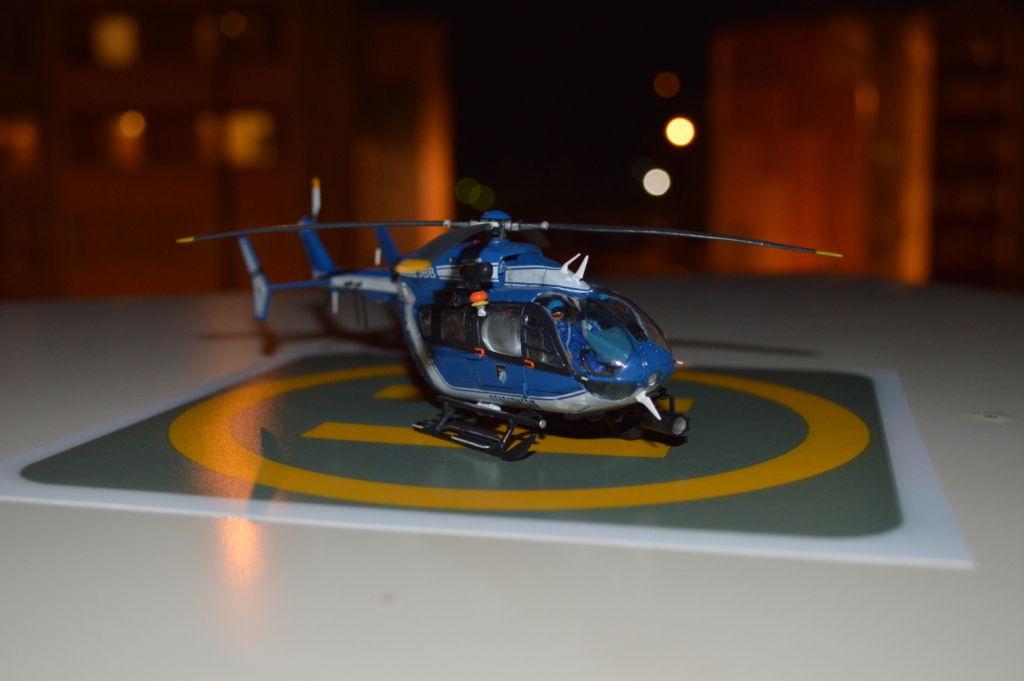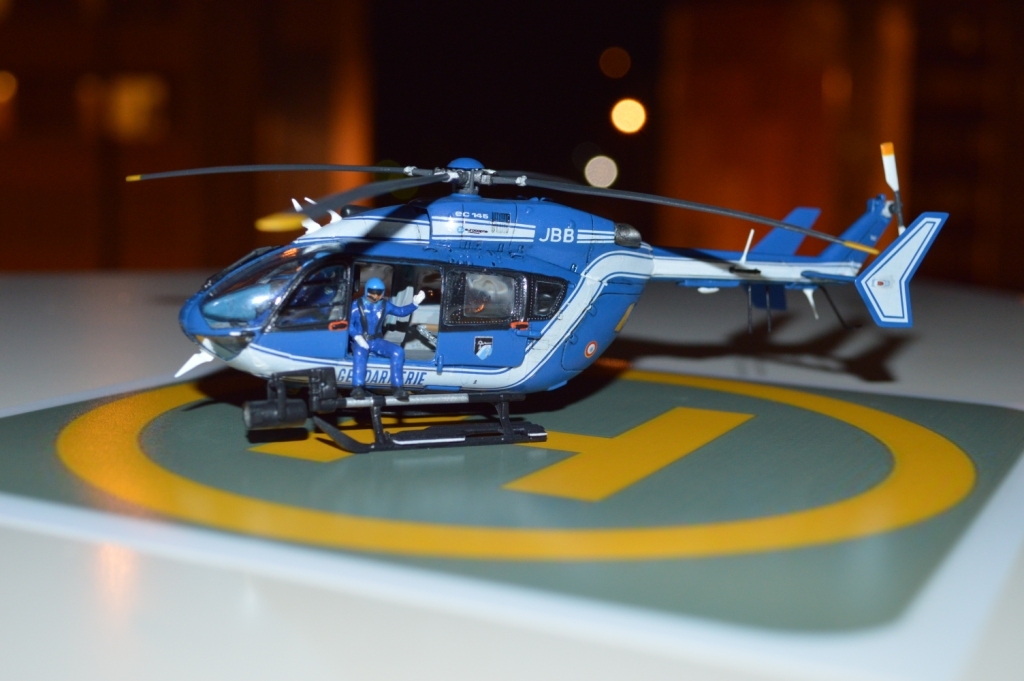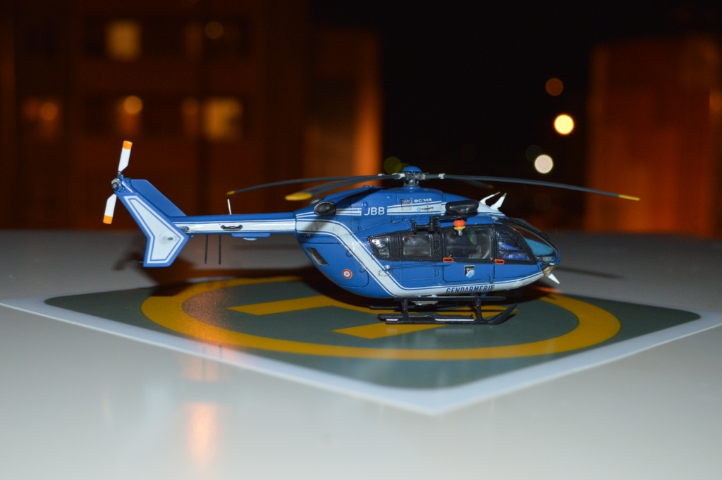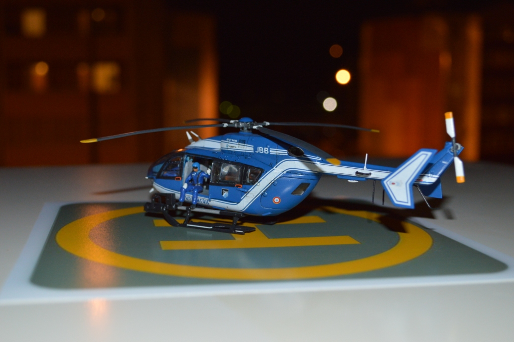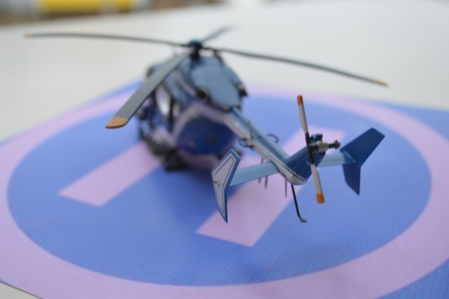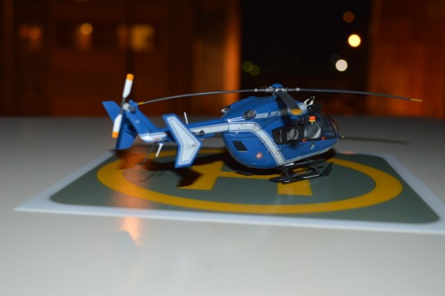 Eurocopter EC-145 от европейского производителя моделей Heller. Нужно сказать модель с высокой детализацией деталей и хорошей стыковкой. Из минусов чересчур мягкий пластик, который очень легко царапается и сложно полируется. Отдельно нужно сказать о прозрачных деталях для боковых окон: снаружи они сделаны выпуклыми, а изнутри прямыми. Т.о. получается линза, которая в целом не очень смотрится со стороны, плюс не правильно просматривается салон - как через лупу. Но главный сюрприз меня ждал ближе к концу - при размещении декалей: мало того, что инструкция хвостовой части не правильно излагала порядок нанесения, так и сами декали пришлось подгонять и урезать, что в итоге ухудшило внешний вид модели. Отдельно стоит сказать о самих декалях - очень плотные и ложатся с трудом. Фиксация также затрудняется сложным рельефом модели. Видимо нужно их как-то размягчать. В целом модель далась не легко, во многом из-за достаточно малого размера самой вертушки. Применил малость шпаклевки от Tamia. Красил аэрографом акрилом от Tamiya и Gunza. После нескольких промежуточных слоев глянцевого лака финишный полуглянцевый Tamiay. Смывка от Mig.