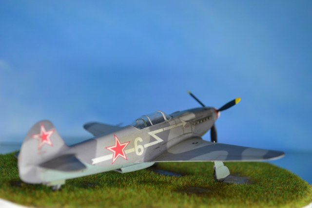 В общем , очень неплохо. Загрязнение брюха чрезмерно именно для этой машины - летали в такой окраске на Як-3 не так уж и много. Немного не вышла кокарда кока винта и длинноват ствол пушки.