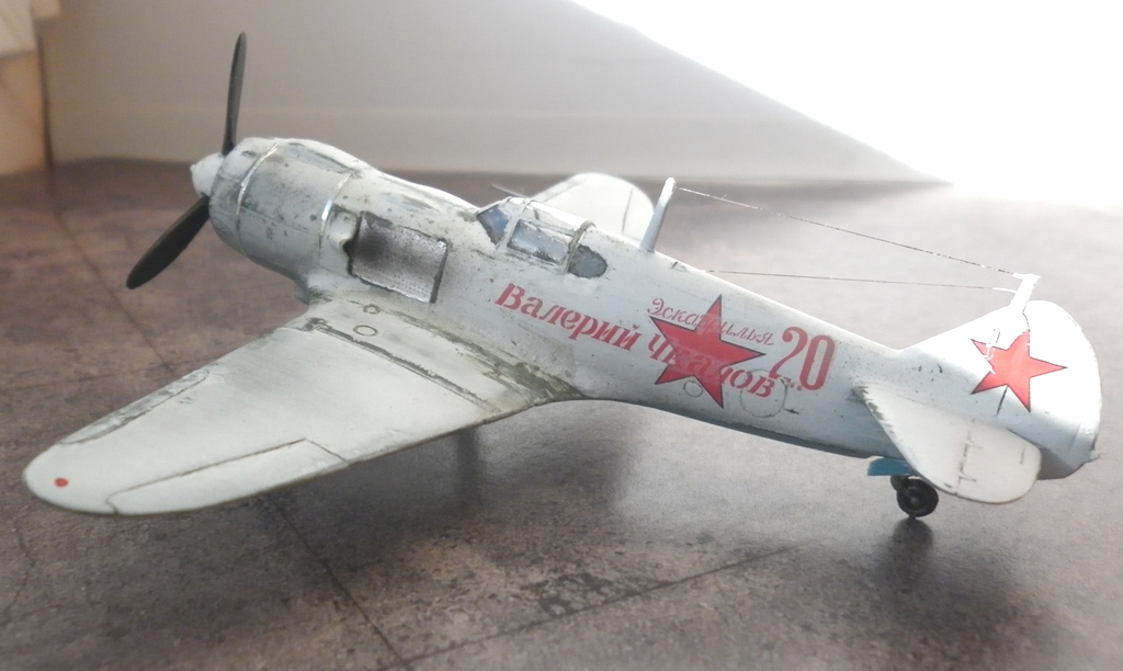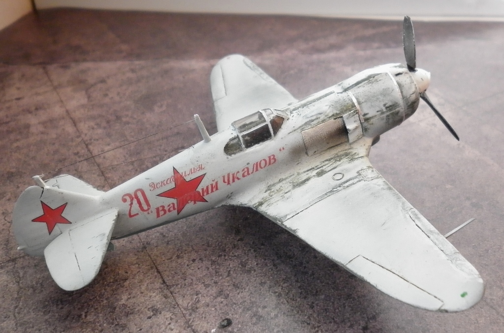 Нормально смотрится только на превьюшках. При увеличении грубо - мелочевка не в дугу, как по исполнению, так и по точности. Из особых косяков - ноги разъехались, развал колес несимметричный, жаропрочная панель по правому борту косая, стойка антенны на киле переразмерена и грубая, на фюзеляже, наоборот, короткая и завалена назад. Троссовка неверная - такая пошла уже на Ла-5Ф без гаргрота.