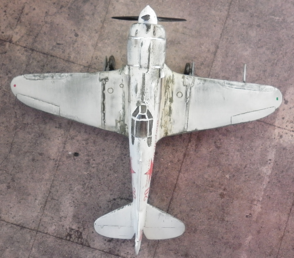 Владимир модель понравилась, редко кто в зимнем камуфляже делает. Единственное наверное пару ''дилетанских'' замечаний - первое Вы сделали ''потертности'' на передней кромке крыла, и у Вас довольно много облезлости ближе к законцовкам, хотя в жизни сколько встречал, в принципе облезлость идет равномерно и даже где-то больше у фюзеляжа. И еще наверно что-то вопроса, у Вас на модели перед фонарем не слишком много Вы белой краски стерли?