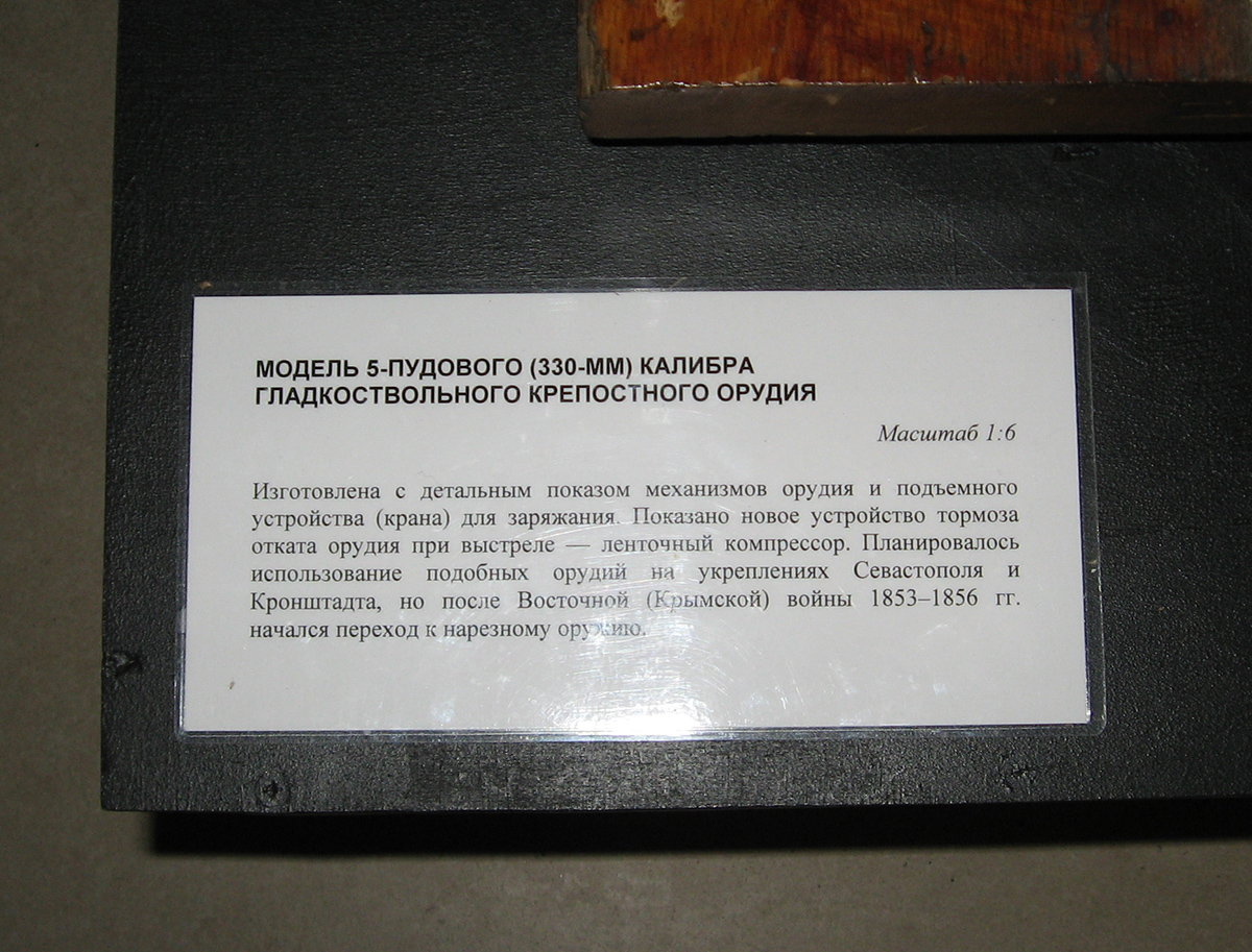 Модель 5-ти пудового (330 мм) гладкоствольного орудия, Центральный военно-морской музей, Санкт-Петербург.