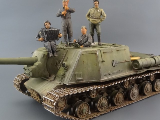 Самоходка получилось великолепно! Оч понравилась! Фигурки похуже....особенно лица, и особенно гармониста. Портят всю работу.
