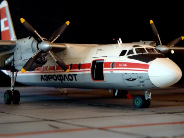 Добрый день всем! Хочу представить Вам свою последнюю работу Ан-24Б знаменитой фирмы "АМОДЕЛ". Ан сделан на заказ. Модель довольно известна в кругу моделистов и особо в описание не нуждается. Все кто собирал, знает, какие есть в ней сюрпризы. Да, есть, конечно, разница между моделью 2009 года, годом выпуска и сейчас и это естественно. Работал на результат. Он перед Вами.