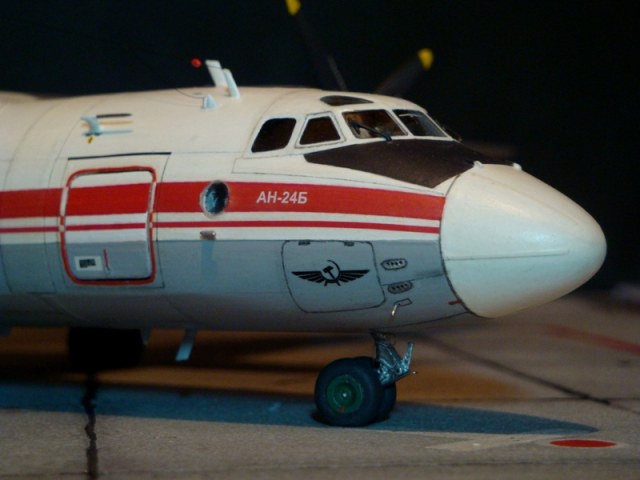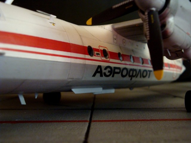Красная бортовая полоса чуть шире,а шрифт АН-24Б чуть мельче(проблема декали)