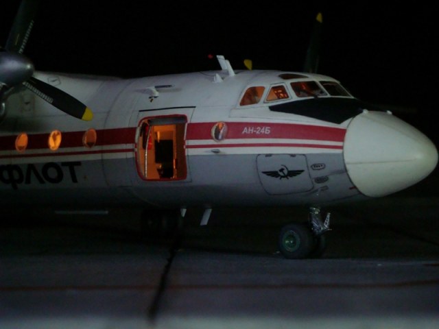 Благодарю за отзыв. Дека использовалась от РЕВАРО на Ан-30 из-за черного АЭРОФЛОТ и курицы. Саму полосу перекроил под Ан-24-ку. Надпись Ан-24 взята с базовой декали. Если бы я старил борт, тогда бы и приглушил черный. Больше ничего не менял.