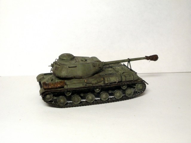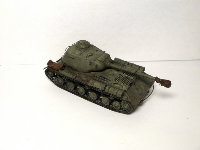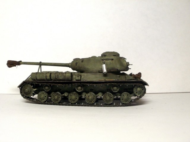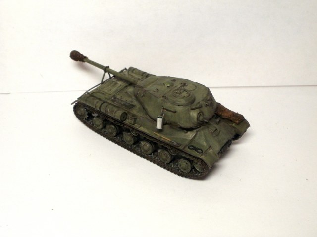 по Ис-2: искаробка, заменил поручни, закрепил орудие в походном положении, сделал кусок брезента и чехол на орудие, ведро