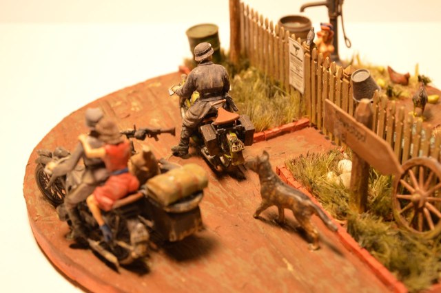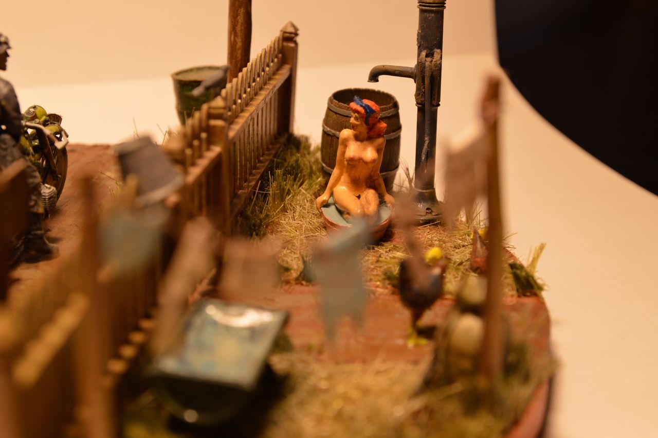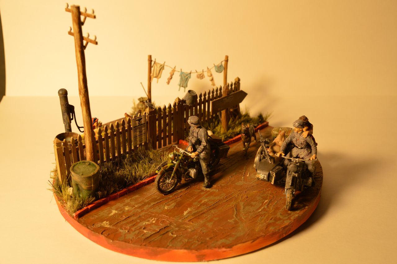 Моющаяся девочка от Condor навеяла вот такую диораму, фигурки все от Condor, мотоциклы Звезда, все остальное кто от куда, пейзаж из сборной солянки и покрашено акрилом.