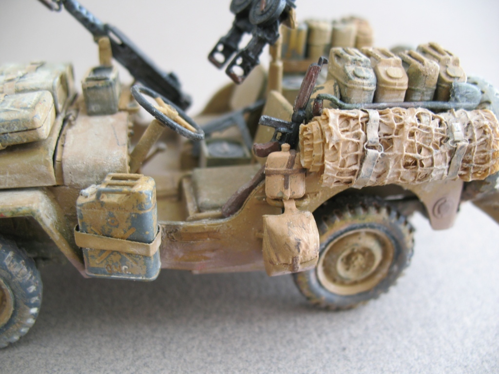 На капот и на крылья , с помощью жести установлены штатные канистры и более реалистичные из набора канистр от Italeri.