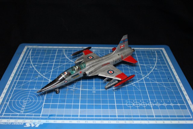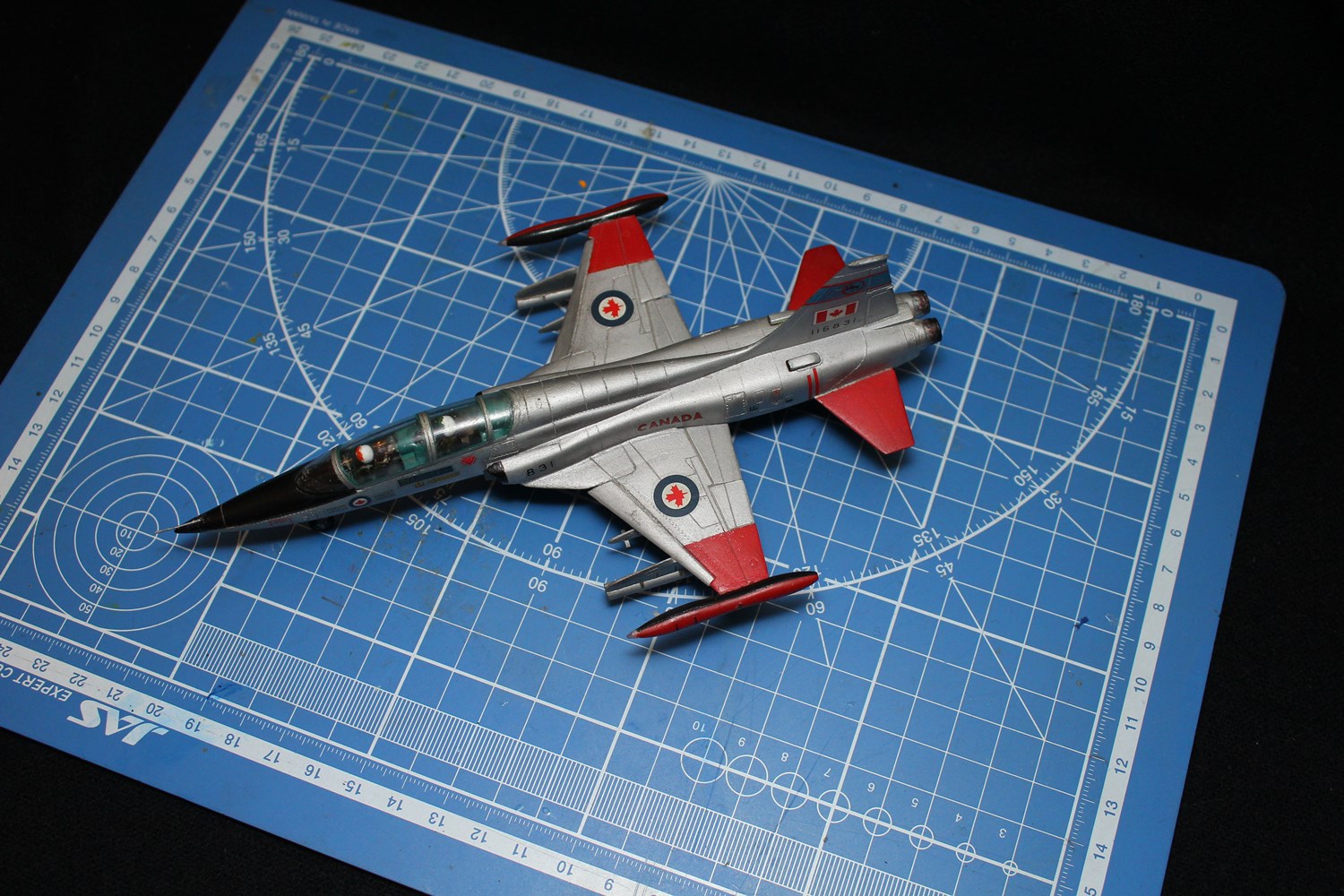 Здравствуйте,коллеги!Решил показать модель F-5B,одну из квартета известной-безизвестной фирмы Старфикс.Модель собирал в 1992 году,когда еще не было ни Злинека,ни Аэроплана с толковой информацией,но зато была дека от Траверса(первый вариант деки)и большое цветное фото из какого-то немецкого журнала самолета в этой окраске(только бортовой номер был другой)Перевод гласил,что изображен F-5B американского производства с "родными"двигателями,но уже получивший в ходе модернизации крыло с отклоняемым носком от NF-5F.Модель собирал,лежа в госпитале,поэтому красил красками ,которые нашел у завхоза,Серебрянка от Пластикарта наносилась в первую очередь,кусочком губки...