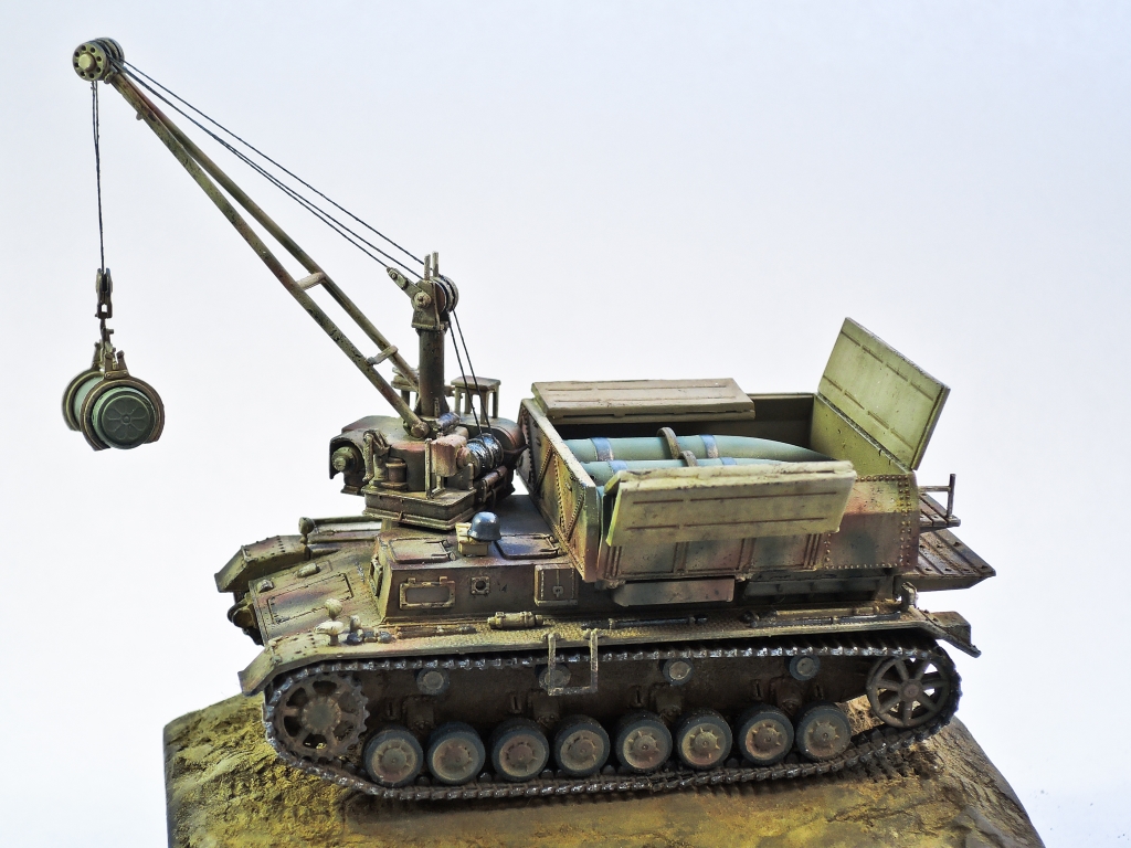Изкоробка с незначительными изменениями. Сделан открытый вариант, хобби бос даёт вариант только с открытым отсеком для снарядов. Окраска hobby color, vallejo, фильты и смывка MIG, пигменты vallejo. Последняя модель, где я использую ужасные виниловые траки.