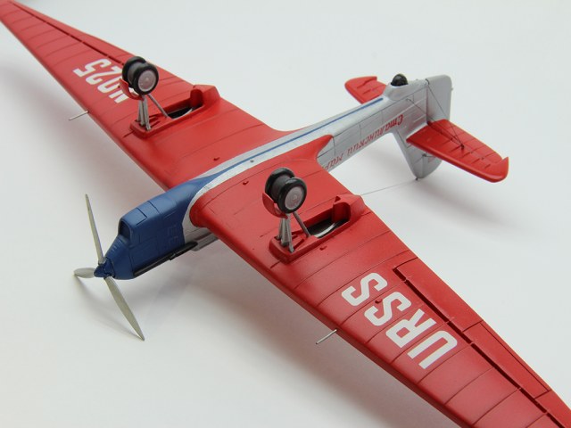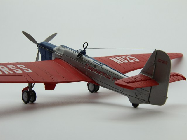Появление модели АНТ вызвало интерес. Правда, в последующем пришлось разочароваться. Автор, наверно хотел постараться, но не совсем удалось. Эти законцовки крыльев и оперения, передняя кромка киля, просто "убивают". Есть ошибки в окраске тех или иных элементов, но это уже мелочь.