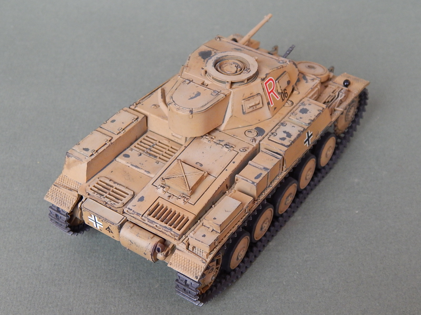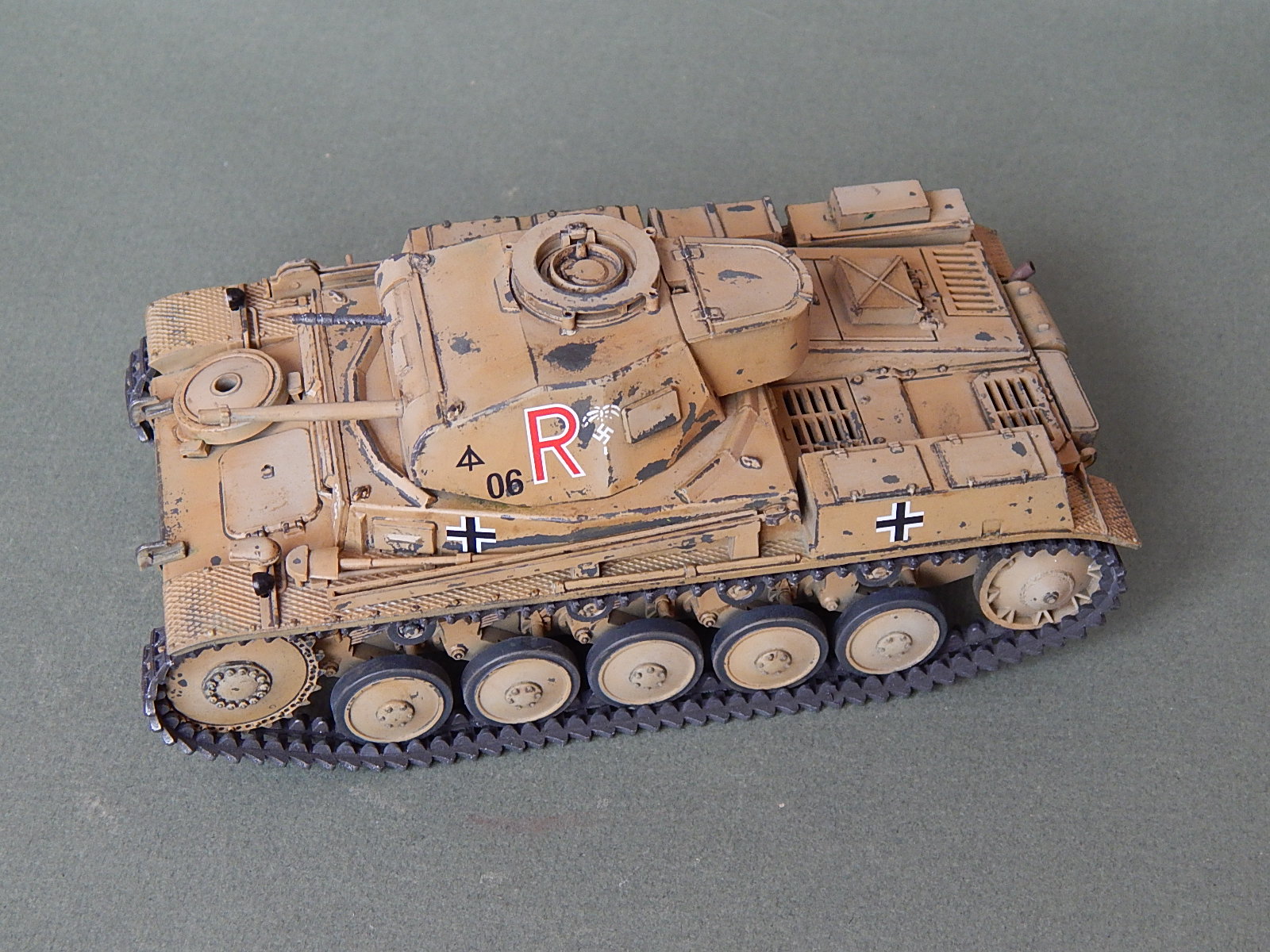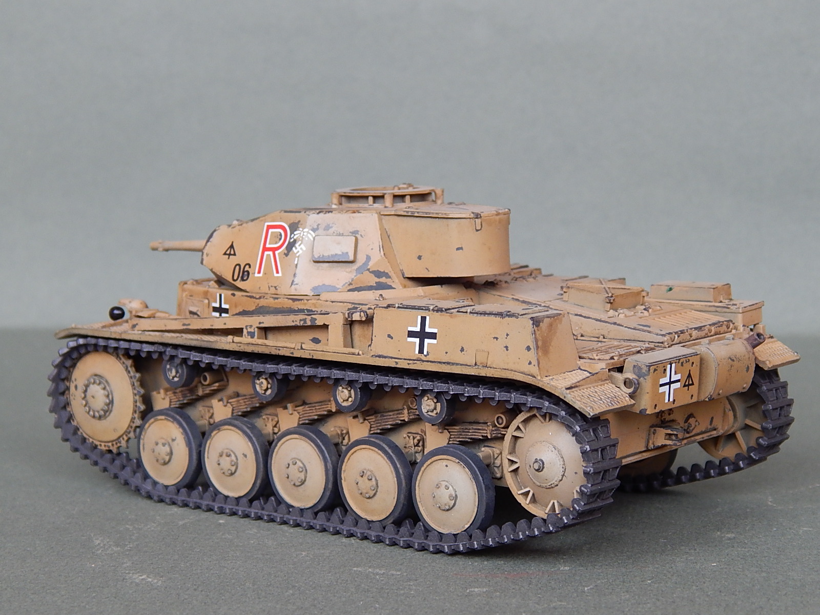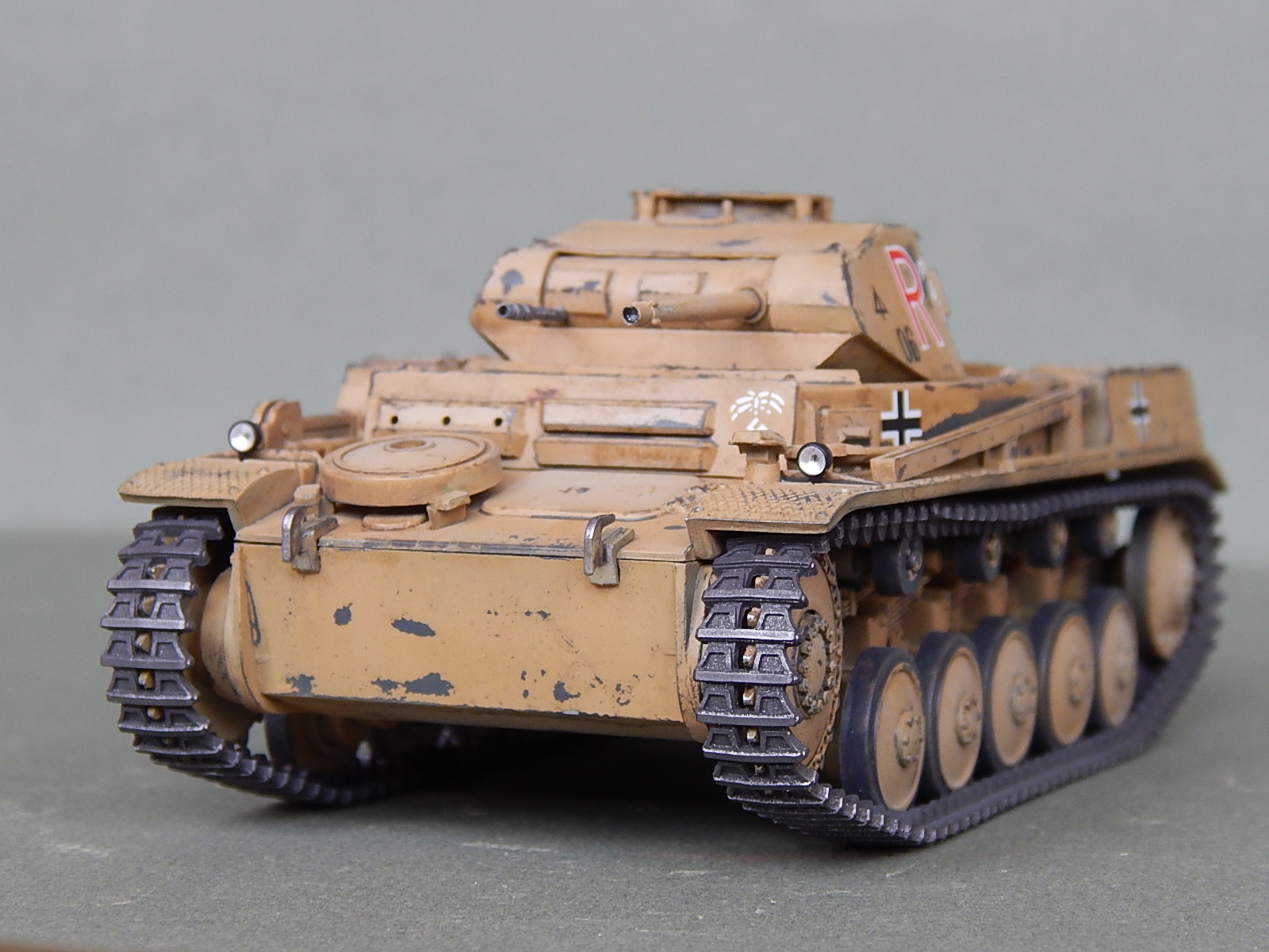 Потёртости как-то не по уму,не там где они должны быть на самом деле,так лиж-бы абы как присутствовали БЫ.Да и литеру R с символикой африканского корпуса по бортам нарисовали на двух слоях краски,странно.....