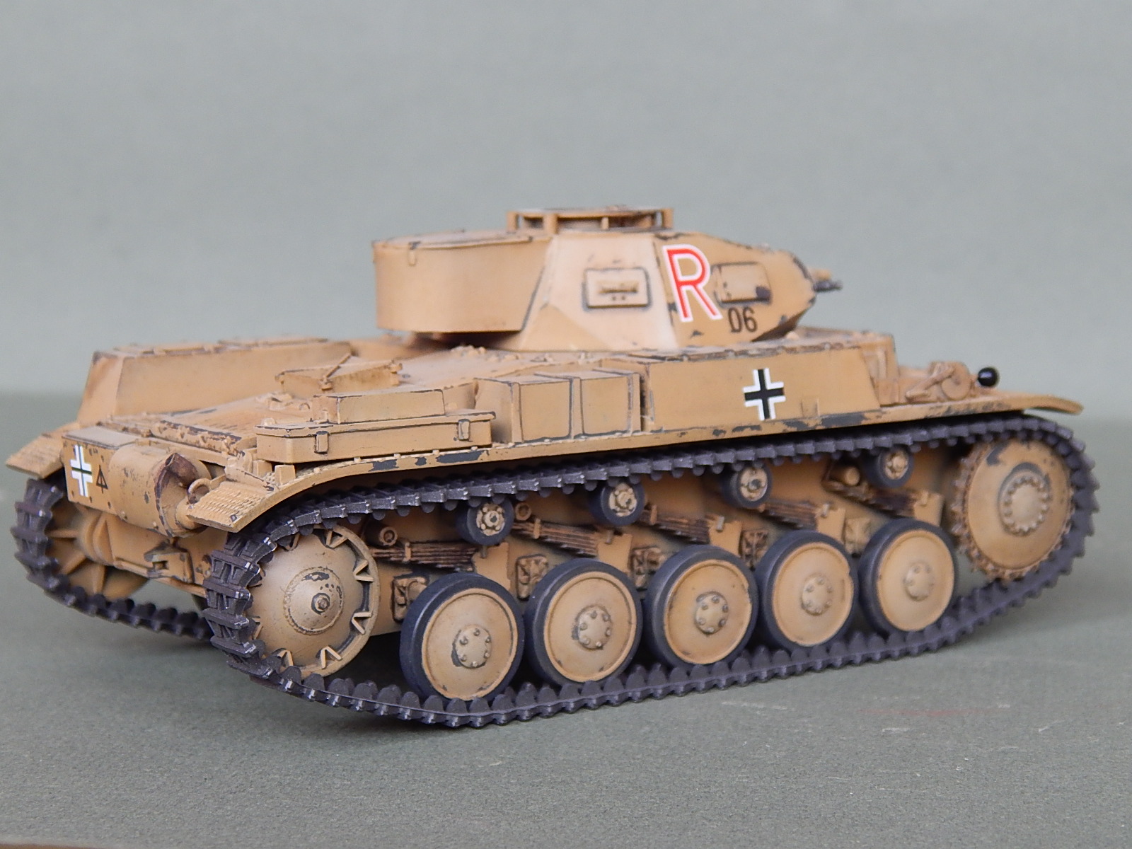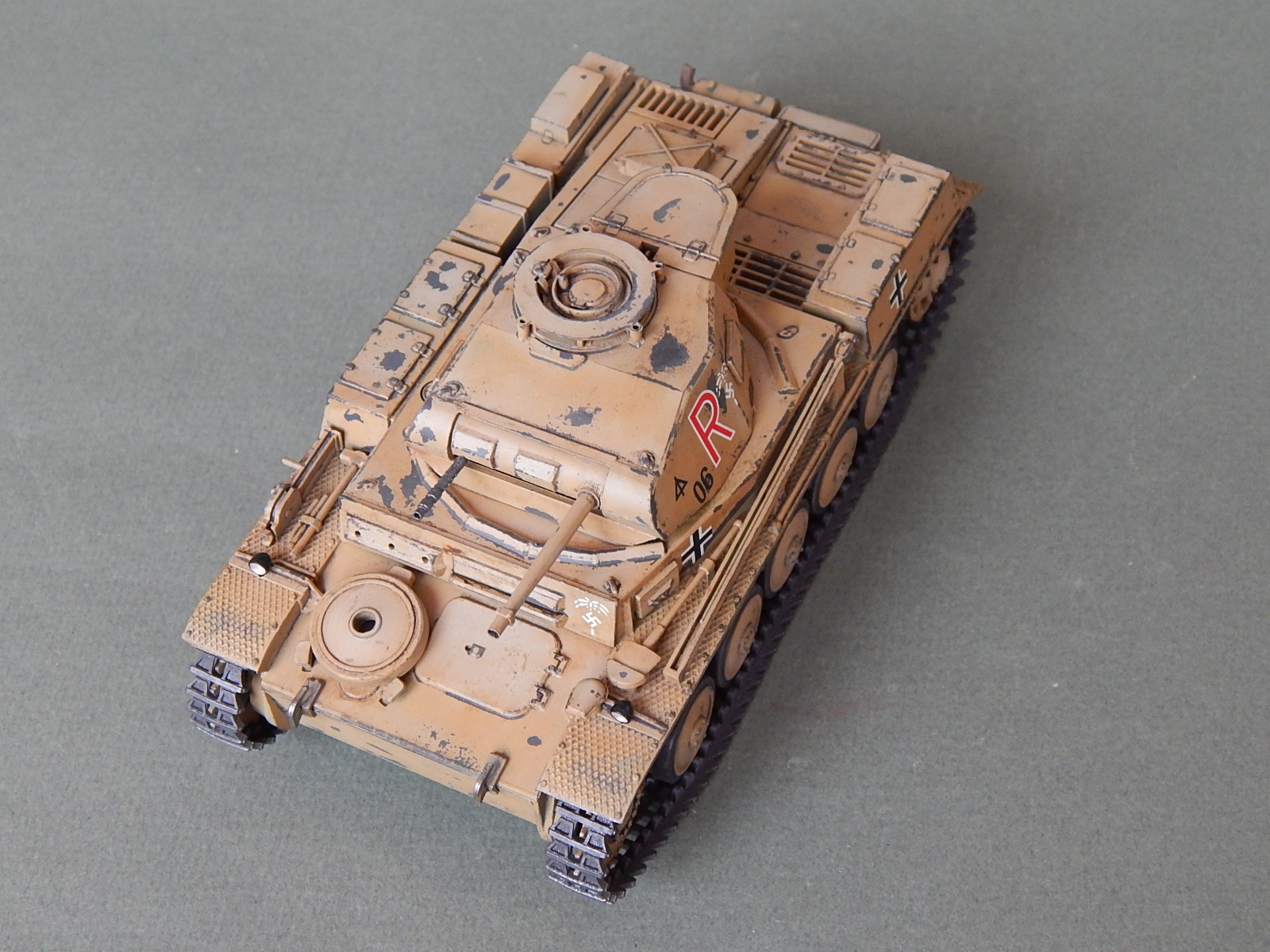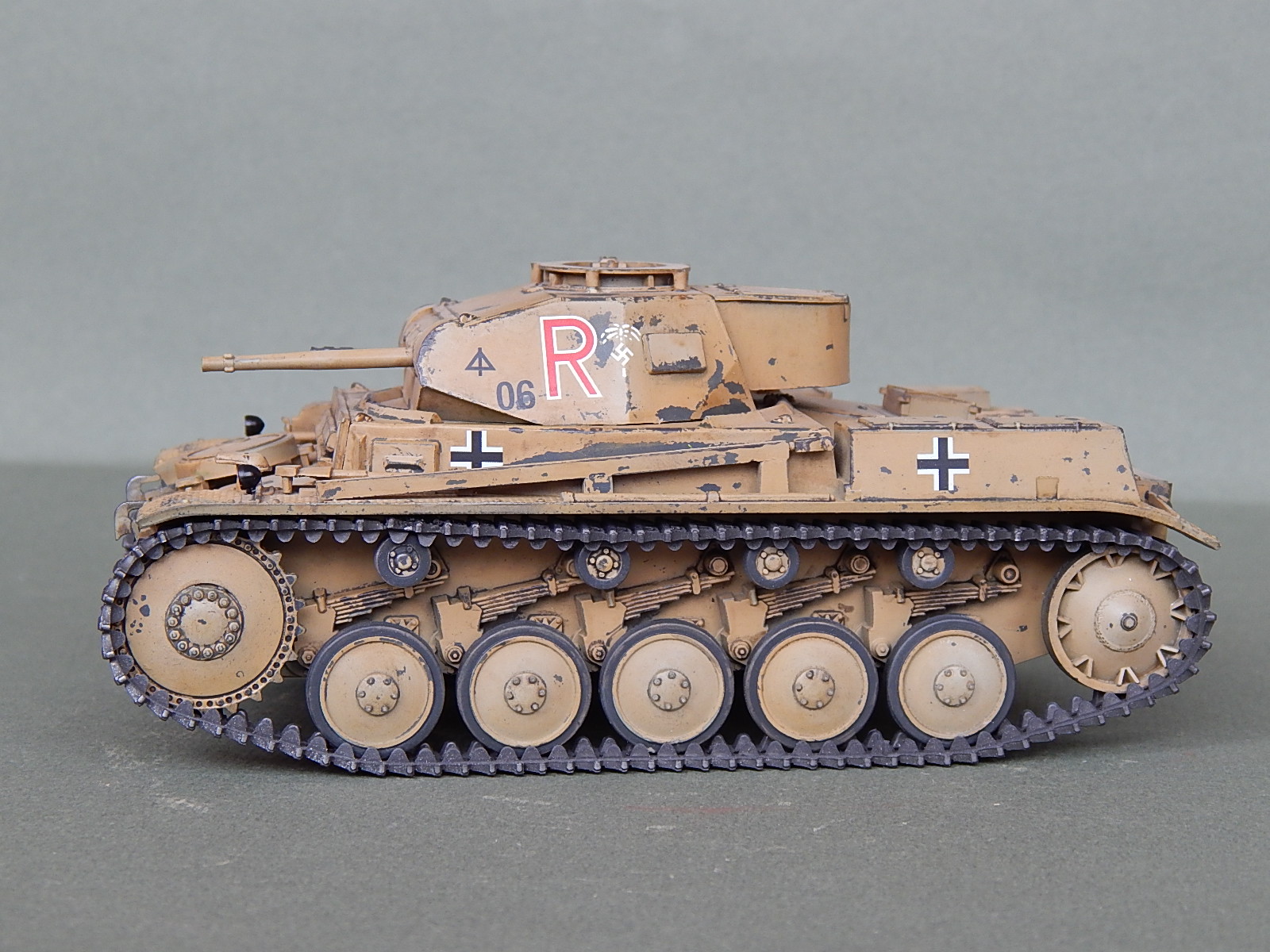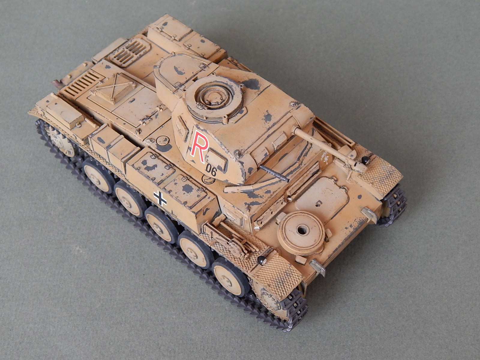 Потёртости как-то не по уму,не там где они должны быть на самом деле,так лиж-бы абы как присутствовали БЫ.Да и литеру R с символикой африканского корпуса по бортам нарисовали на двух слоях краски,странно.....