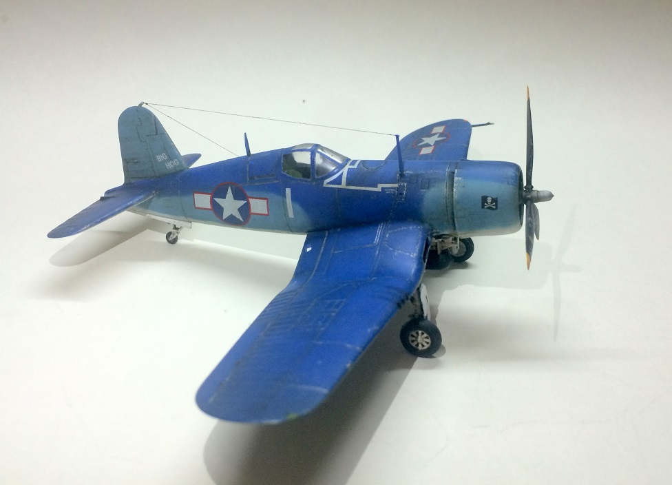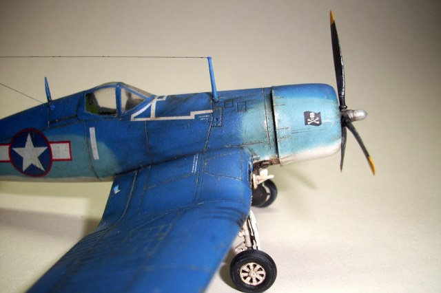 о, фото однозначно лучше. Корсар хороший вышел, не знаю, правда, на счет попадания в цвета (пусть знатоки авиации ВМФ США на этот счет подскажут лучше). Собран и покрашен хорошо. С обгадингом перестарались (ИМХО), получилось тАнковато. С расположением некоторых сколов не совсем согласен.