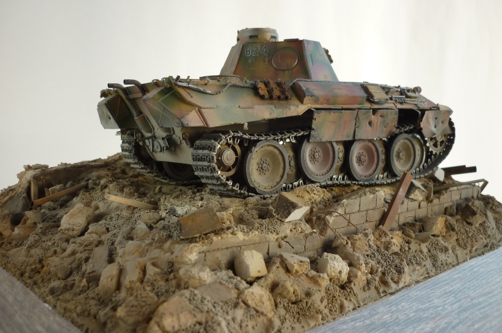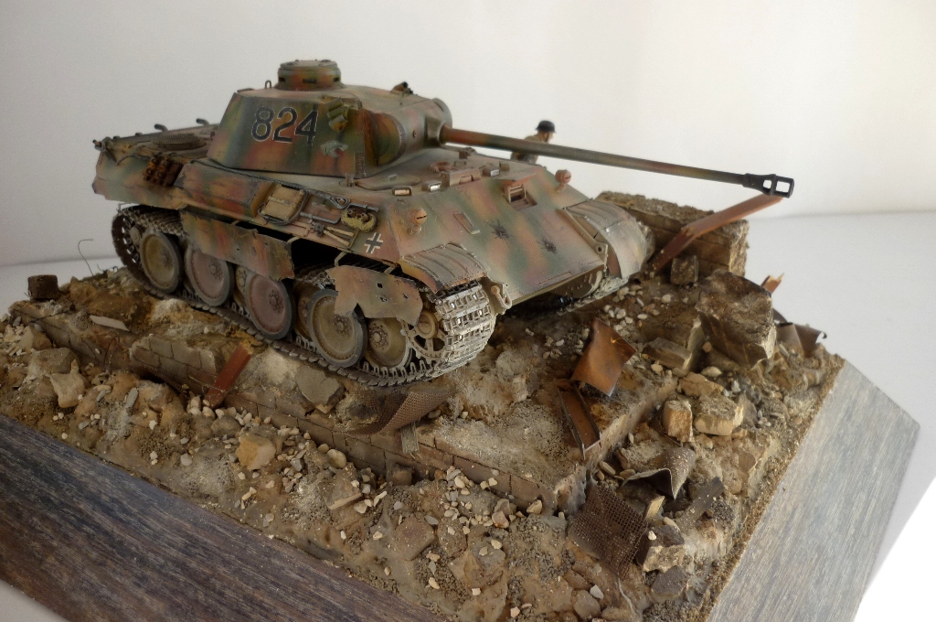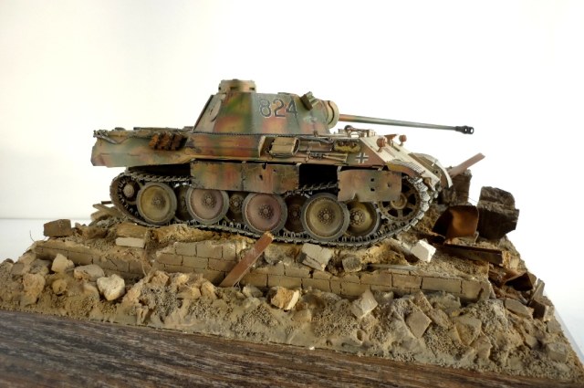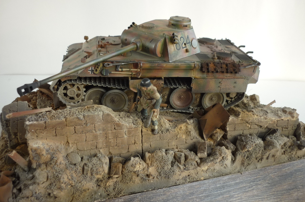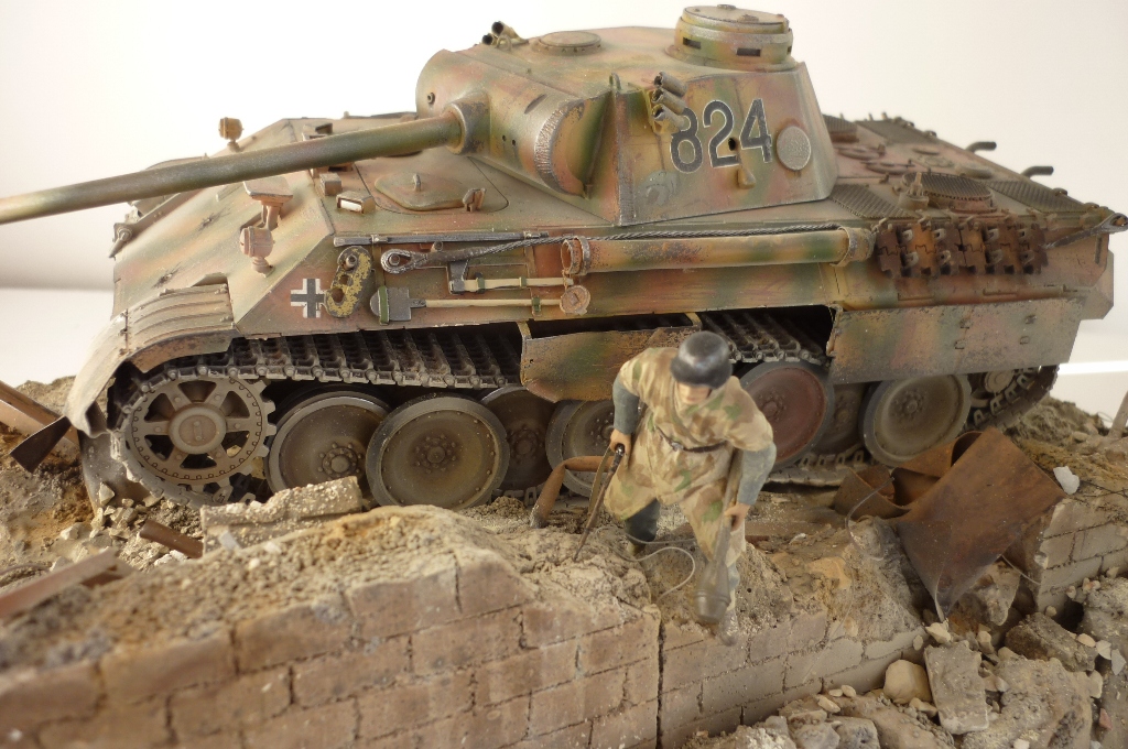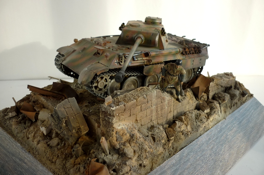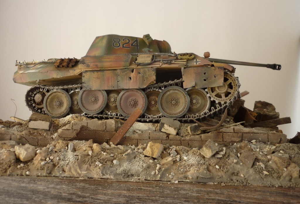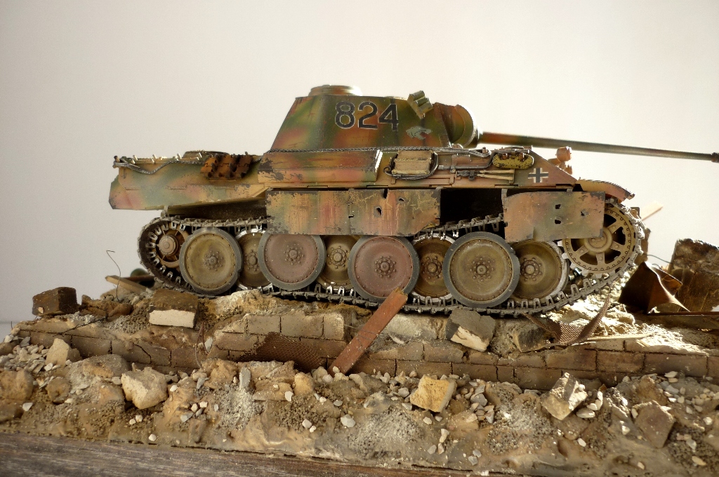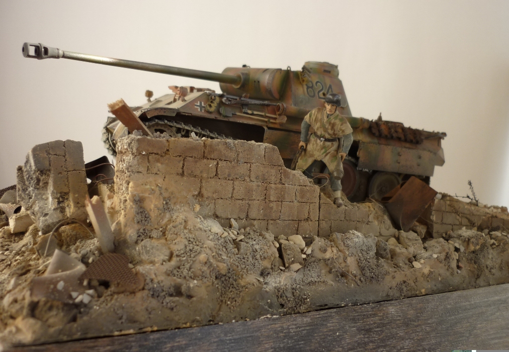 )), развалины очень реалистичны, маленький придиризм, надо было бы за пантерой кирпич в труху примять, сделать имитацию коллеи, все таки танк тяжелый, припроходе кирпич крошится на раз, а то создаётся впечатления , его туда поставили