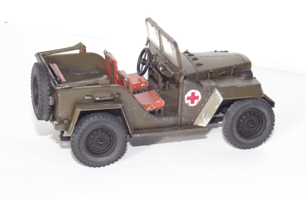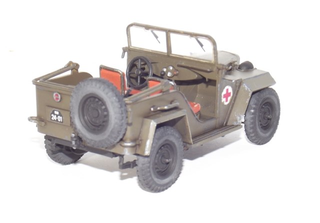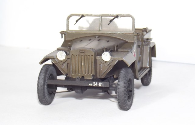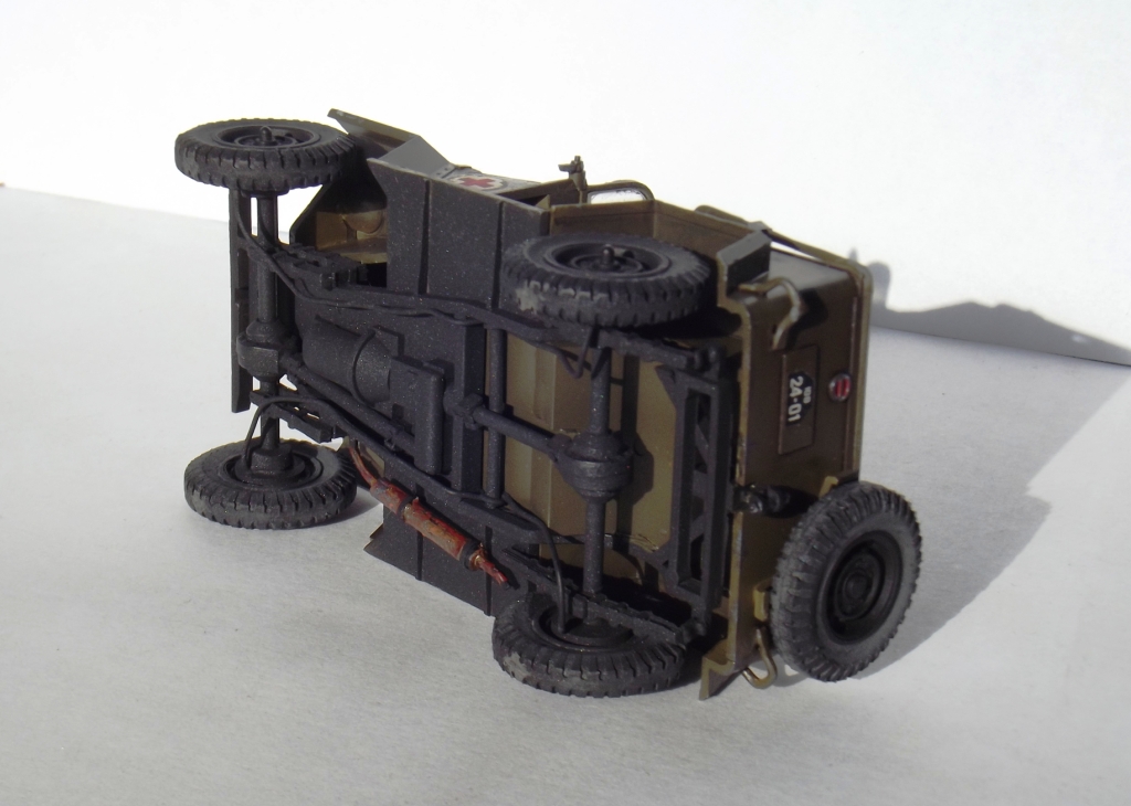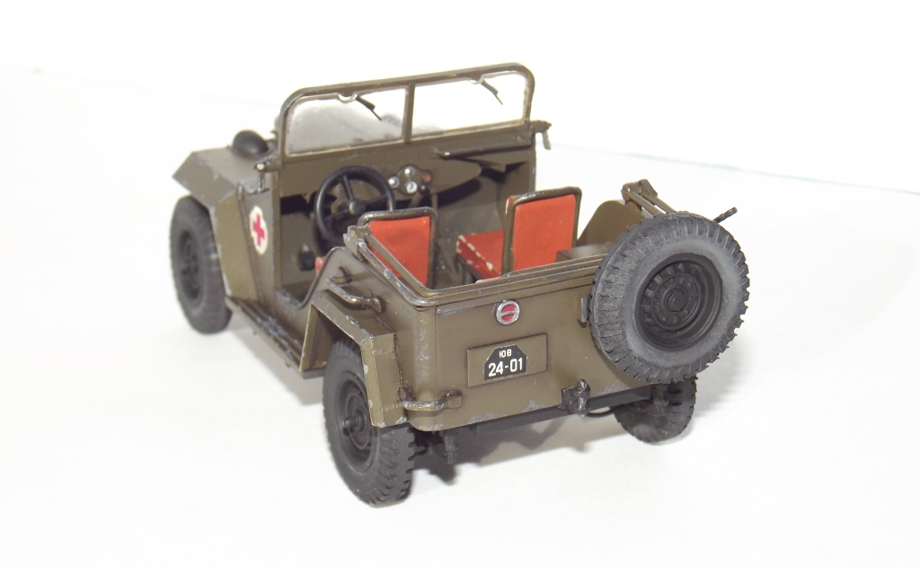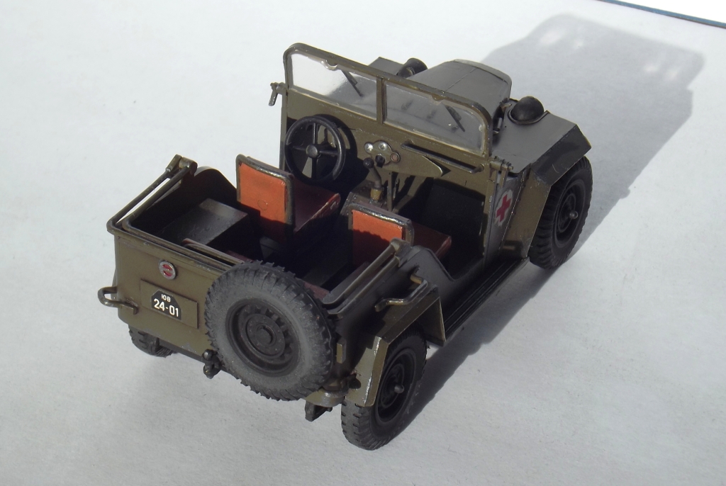 История данной модели такова; изначально хотел собрать "из коробки", но посмотрев на качество некоторых деталей (качество было не какое, дрова они и есть дрова))), решил всё таки немного "перепилить" данную модель. Долго описывать все переделки и доработки, поэтому всё что переделано и доработано показано (ставшим уже для меня традиционным) на последних фото. Отдельно хотелось бы пояснить насчёт ветрового стекла. Когда поставил стекло из комплекта и начал делать доработки, понял что лучше бы было его заново сделать (оно толстое и с прорезями для основы дворников), но было уже поздно и заново всё это разбирать (что браблематично), совсем не хотелось, поэтому имеем то что есть. В остальном помимо того что показано на последних фото, грунтовка, шпаклёвка, запил, зашкур и д.р. Красилось всё это дело аэрографом и кисточками. Запылять и загрязнять не стал, давайте будем думать что машина "поюзаная" но после капитального техремонрта, помытая почищенная и смазанная (но не покрашена))). По матчасти не знаю (не специалист по этому вопросу), на 100% достоверность не претендую. Да еще одно, на ваше внимание представлено два вида фото, светлые и потемнее, (не знаю какие больше вас устроят). Вот вроде и всё.