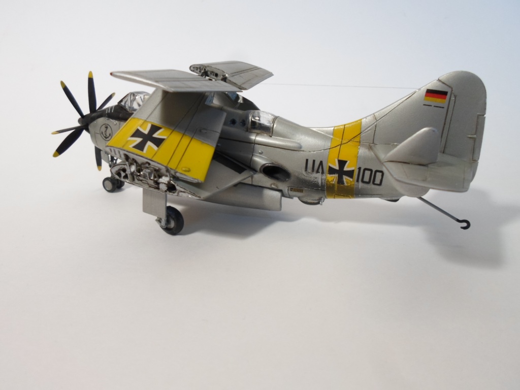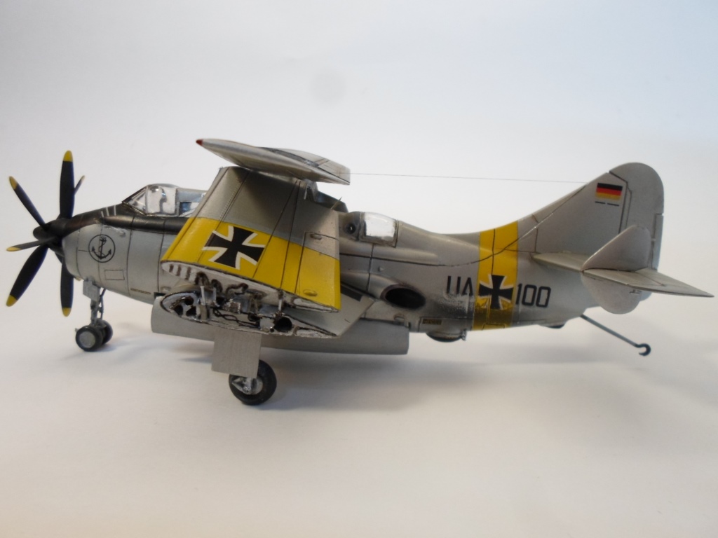 Работа впечатляет. Я тоже делал такую модель. Но объём переделки поменьше( крылья складывать не стал). По достоверности варианта окраски ...Бундесваффе - не моя тема, не буду комментировать. А вот выделение расшивки очень чрезмерное. Выглядит уж очень толстым.