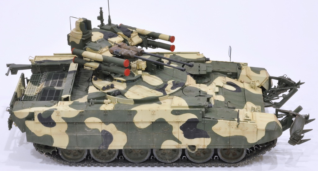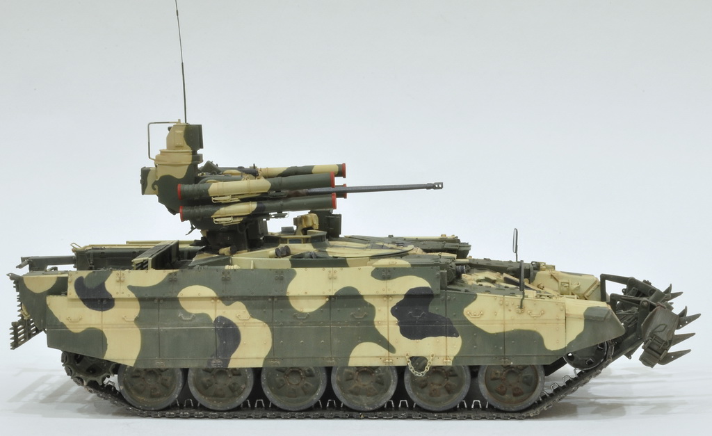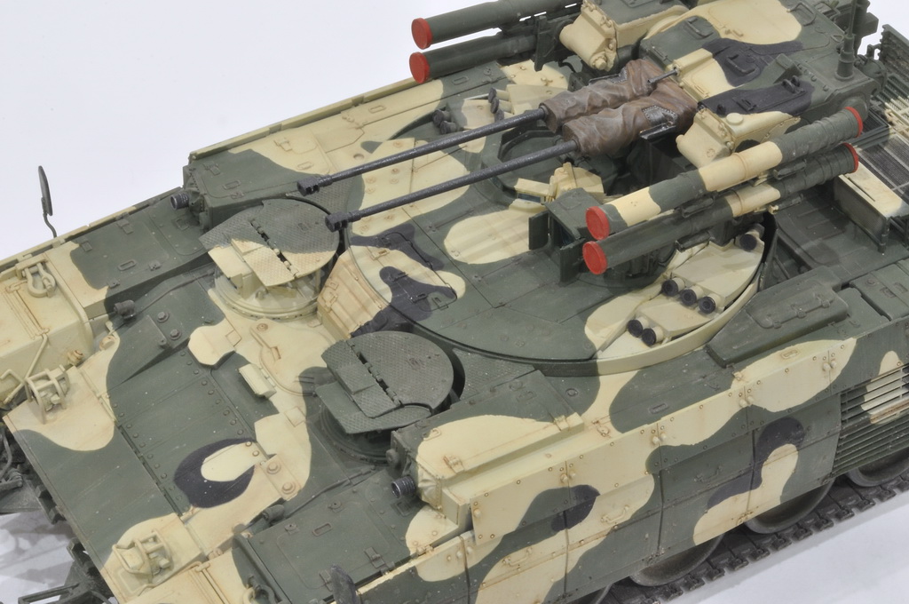 Буксировочные тросы, стволы орудий 2А42 на точеные стволы от компании «MagicModels», траки заменены на металлические траки компании «MasterClub», а также заменил систему 902А/Б "Туча" (заряженная) от фирмы MagicModels и антенный ввод той же фирмы.