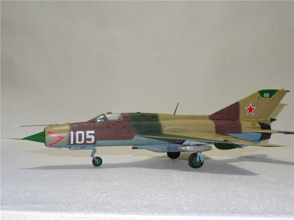 Модель собирается практически без проблем,вариант вооружения на данный вариант делал по воспоминаниям одного бывшего курсанта ныне подполковника."Пушки висели,но мы из них не стреляли,а вот НУРСы и бомбы это да..."Блоки УБ-16 взял из родственного набора МиГ-21МФ.красил как обычно Тамиевским акрилом,сильно старить не стал.Декали и технадписи использовал родные,из набора.Очень уж меня умиляет "Проверь нанежность"...