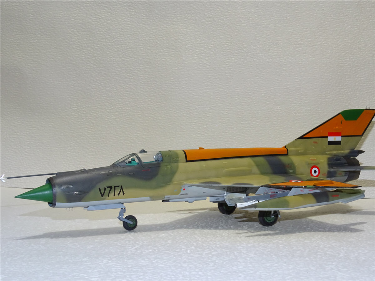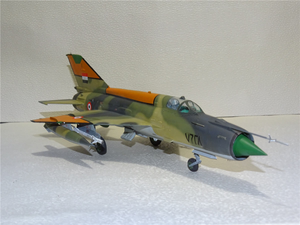 Продолжая свою серию МиГ-21вых выкладываю на обсуждение МиГ-21МФ от Эдуарда.Про саму модель говорить смысла нет,тем более что это был самый первый кит в серии.В такой вариант я ещё хотел красить МиГ-21 от OEZ(других не было),правда собирался делать 8454,на коробке с МиГ-21МФ он идёт ведомым,декали AeroMasterDecals вариант№1.Но началась "демократизация" Ирака-и я сделал его иракцем.Вот...Прошло время и появился Эдуард.Здесь я правда немного отступил от правила из коробки и сделал обвязку ниши по фото.Единственное что при окраске сглупил,надо было чёрные полосы накрашивать,а не клеить декалями.Красил и акрилом,и эмалями.Сделал не большую тонировку,приглушил яркость декалей.Покрыл модель матовым лаком,и получил "радостное поблёскивание"декалей особенно номера.Ну вот...