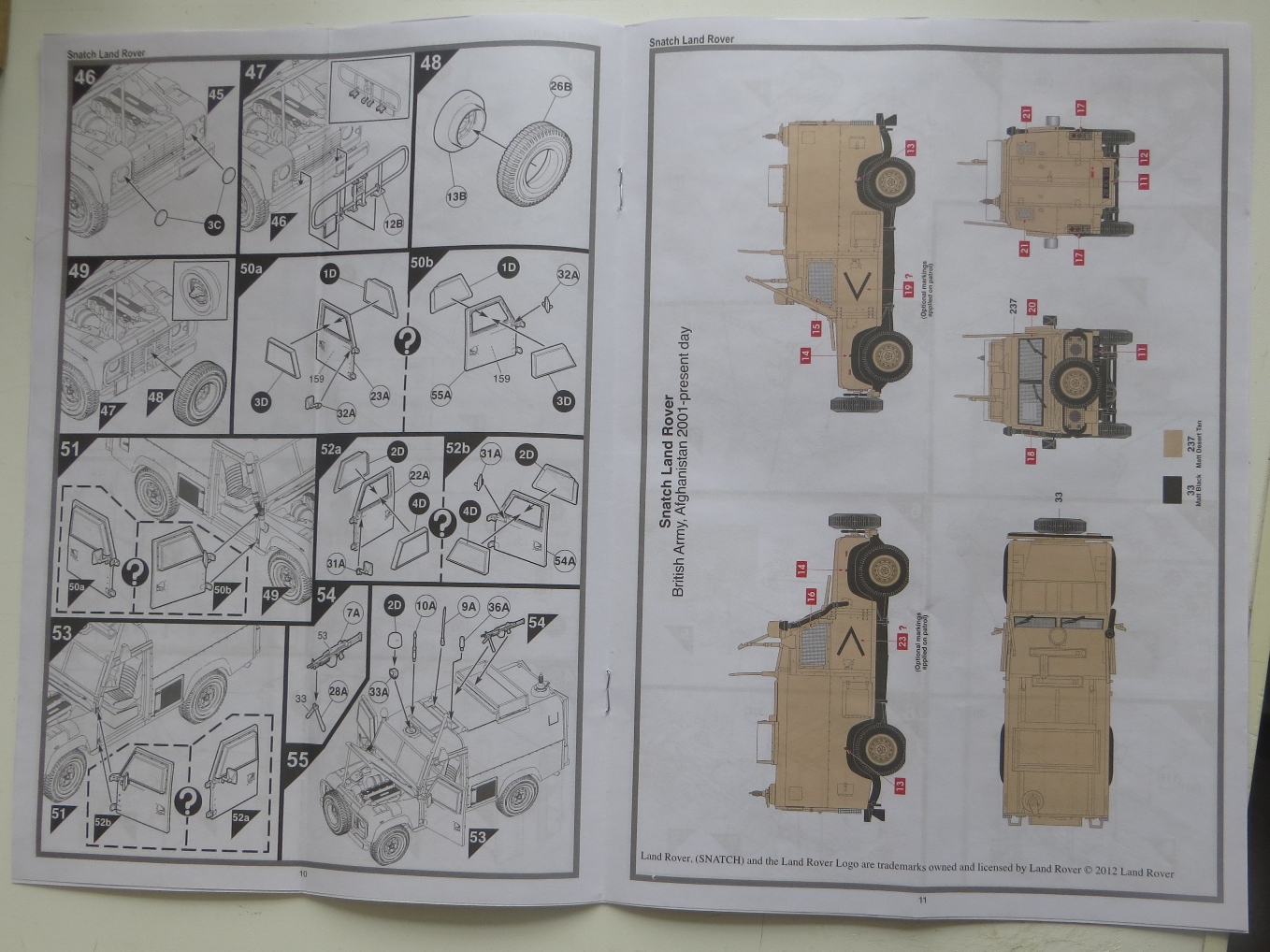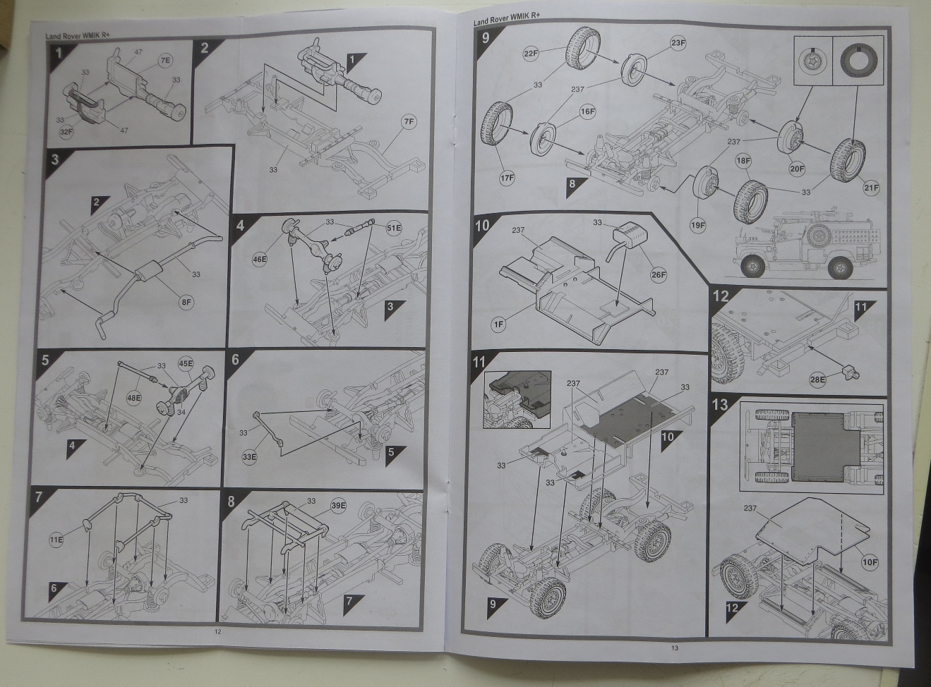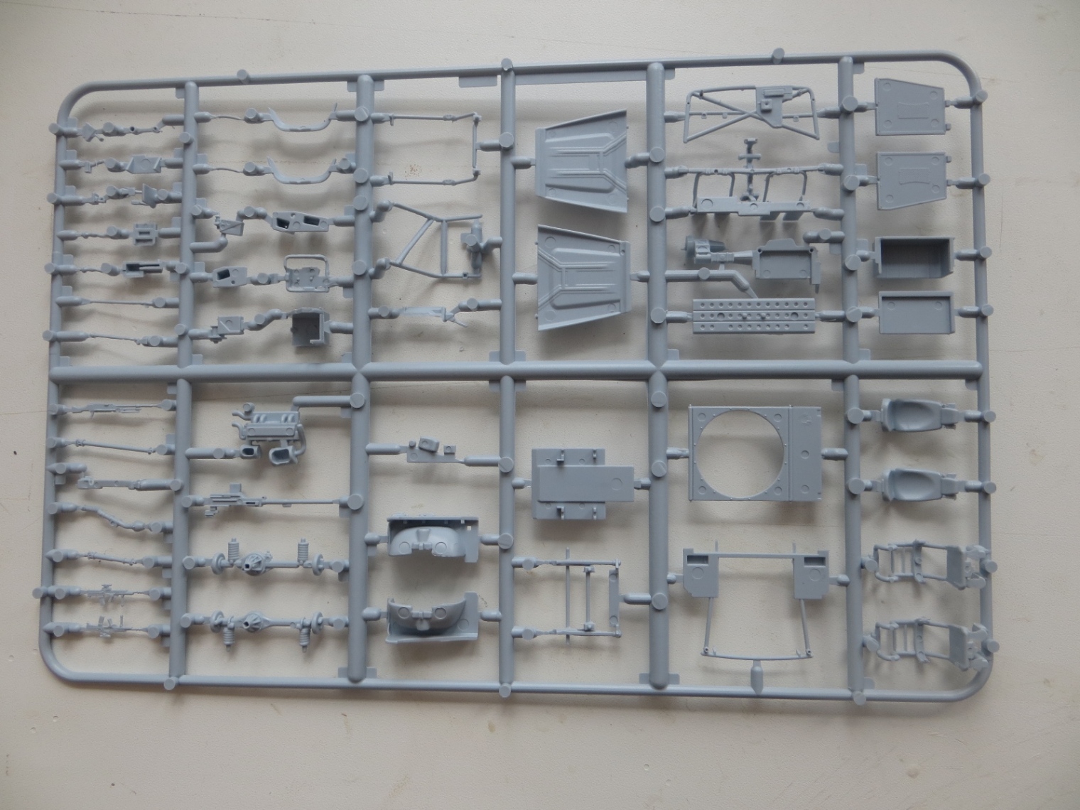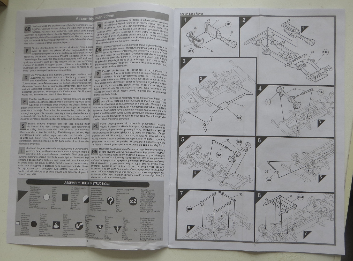 Коробка содержит 4 литника (по 2 на модель), 1 литник прозрачных деталей, декаль - одна на две модели, инструкцию и приглашение вступления в официальный клуб Airfixa за 16,99 фунтов. Имитация решеток на стекла сделаны декалями, буду менять на металлические от наушников или кассет от вибросит. В наборе имеются варианты деталей для закрытых и открытых дверей и капота у обеих моделей. Качество литья на первый взгляд хорошее, имеются кое-где на нескольких деталях небольшой облой. Удивило не одинаковая толщина литников (в центре очень толстый, по периметру обычной толщины). Еще немного расстроила имитация просадки колес, придется закапывать в песок. Также на коробке есть инструкция по цветам окраски. Сам буду делать из набора конверсию шести колесную постапокалиптическую (даже две, позже еще один набор прикуплю).