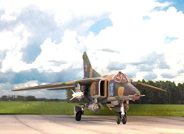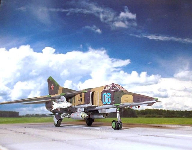 Лет 10 назад купил по глупости академовский набор реек и дров под названием МиГ-27, довезти до ума его не смог. Так и остался миГ-27 по мотивам...