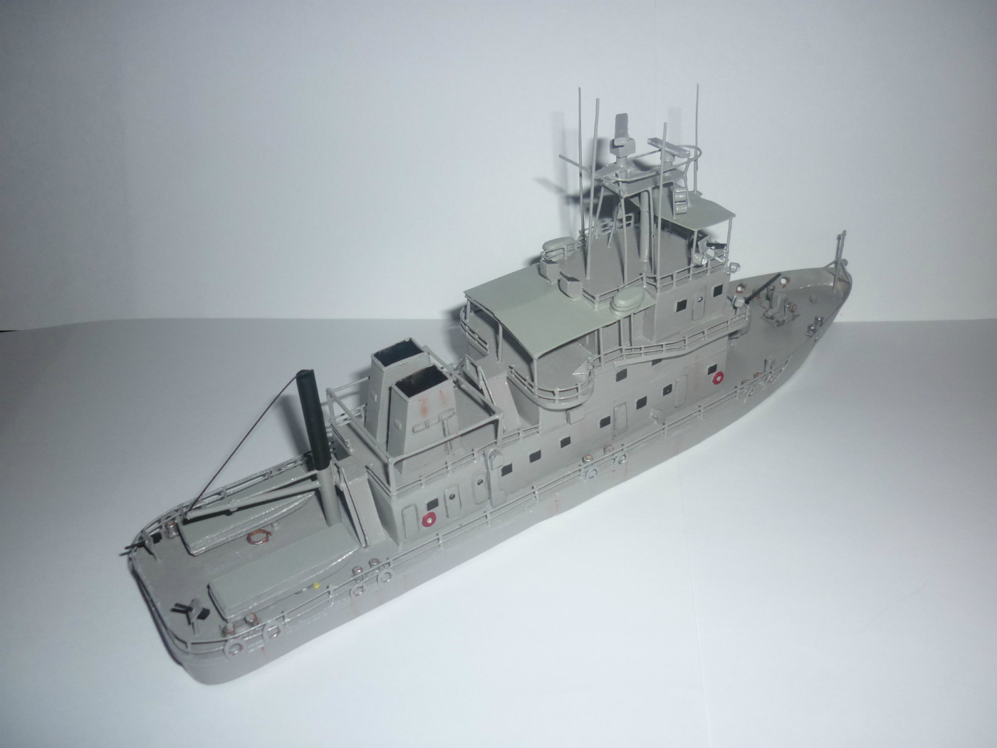 Спасибо) Рад, что понравилось) Про детализацию верно подмечено, попробую добавить канаты на борта и пару бочек на заднюю палубу. С тентом я так и хотел поступить - сделать из бумаги, но он сложной формы, сквозь него проходит надстройка с радарами и антеннами, поэтому пошел простым путем. А спас средств на нем аж 8 штук) 2 лодки на корме и 6 надувных на тенте по три с каждой стороны.