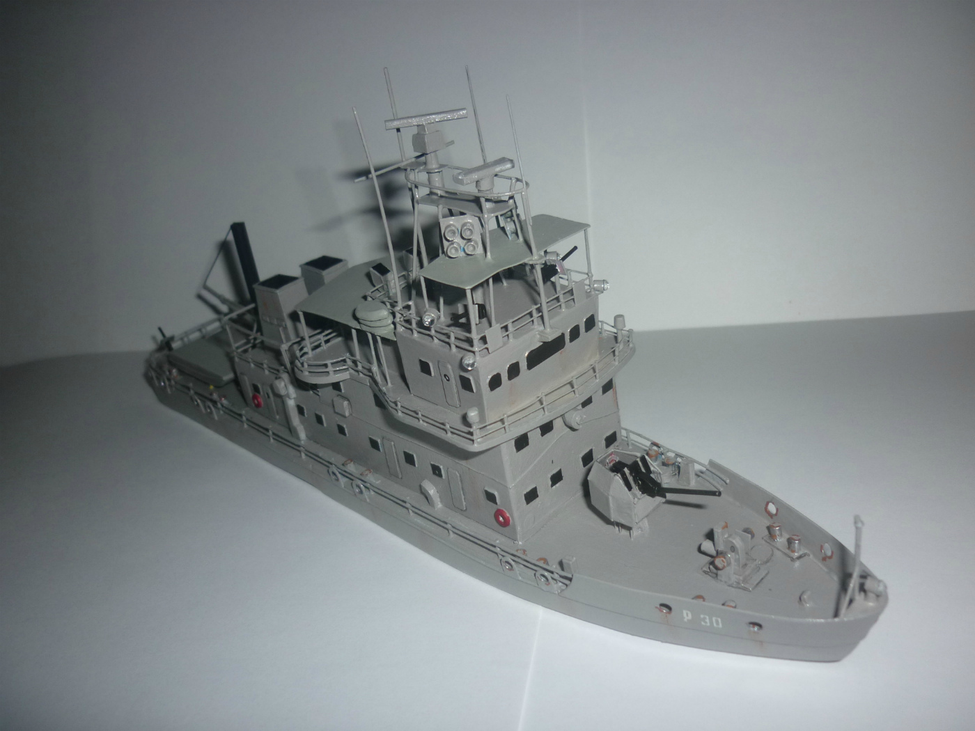 Что касается самой модели(хотя лучше сказать - макета), то это одна большая импровизация. Делал я его по фотографиям, а их в сети мало и детальных снимков нет, по этому матчасть хромает на все четыре ноги, а задняя палуба вообще делалась наугад. Потом я таки нашел снимок Амапы - другого катеры серии, и оказалось, что почти угадал.