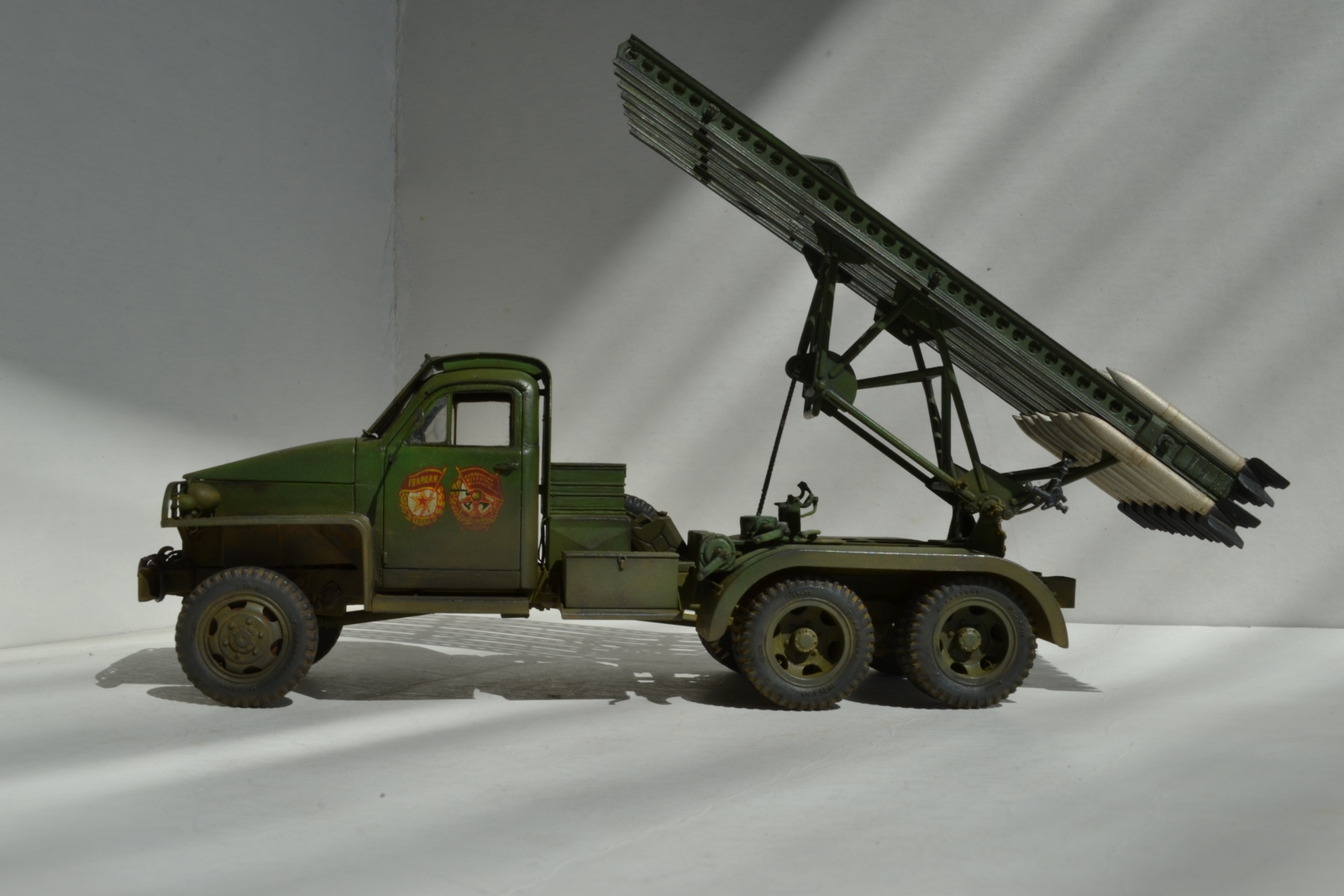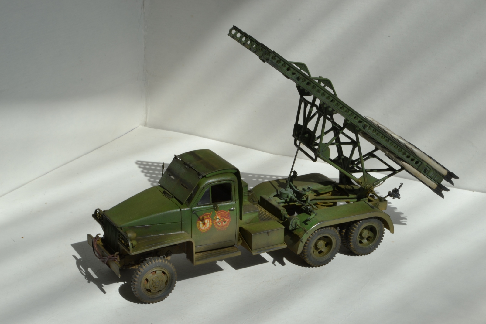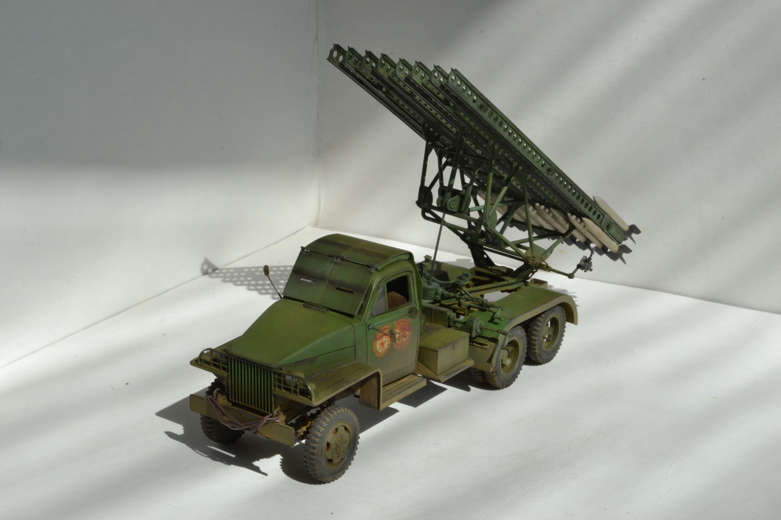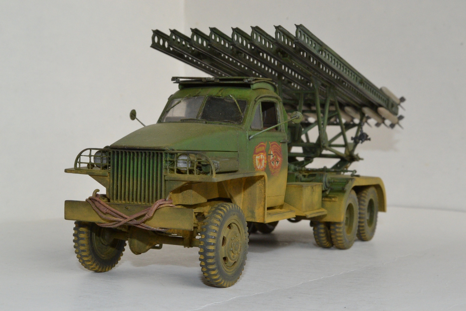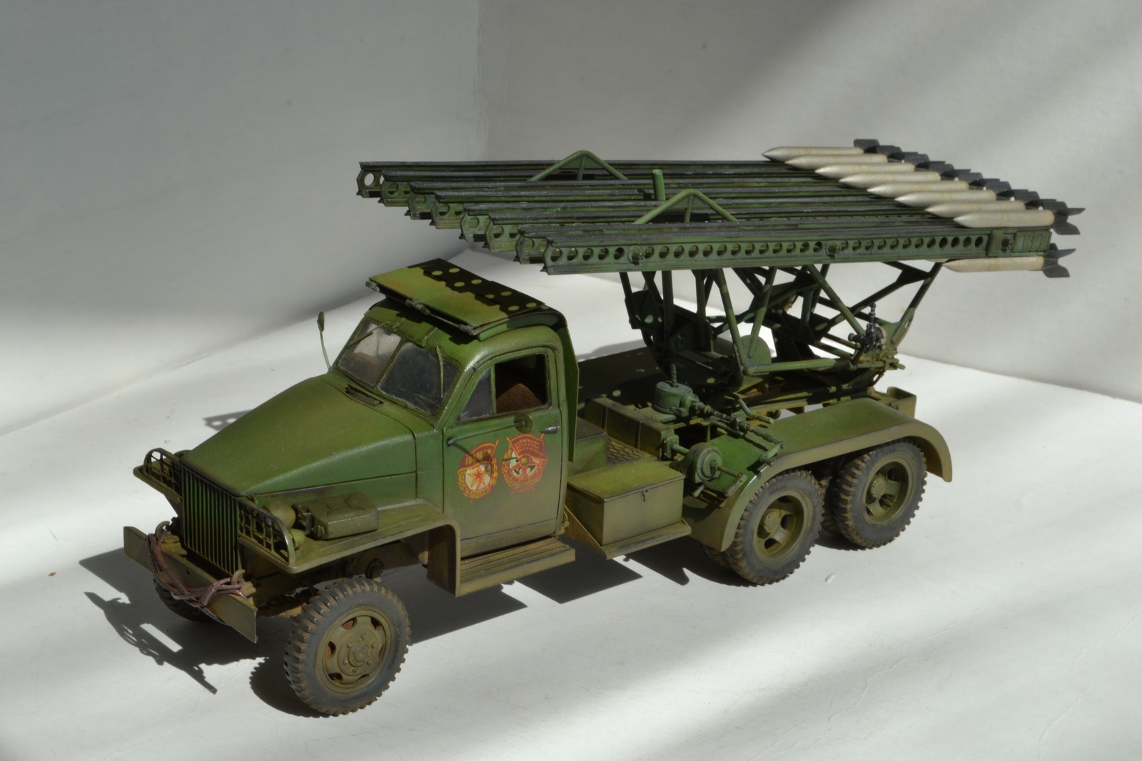 Немного истории. После успешных испытаний в марте 1941г., 21июня1941г. была принята на вооружение БМ13 получившая прозвище "Катюша". Первый залп по врагу был произведён 14июля1941г. в 15ч.15мин. в районе Орши батареей реактивной артиллерии под командованием капитана И.А.Флёрова. С весны 1942г. реактивный миномёт устанавливался на ввозимые по ленд-лизу полноприводные шасси. Наиболее известным среди них стал Studebaker US-6/ C 1943г. БМ-13 получила индекс "Н" - нормализованная.