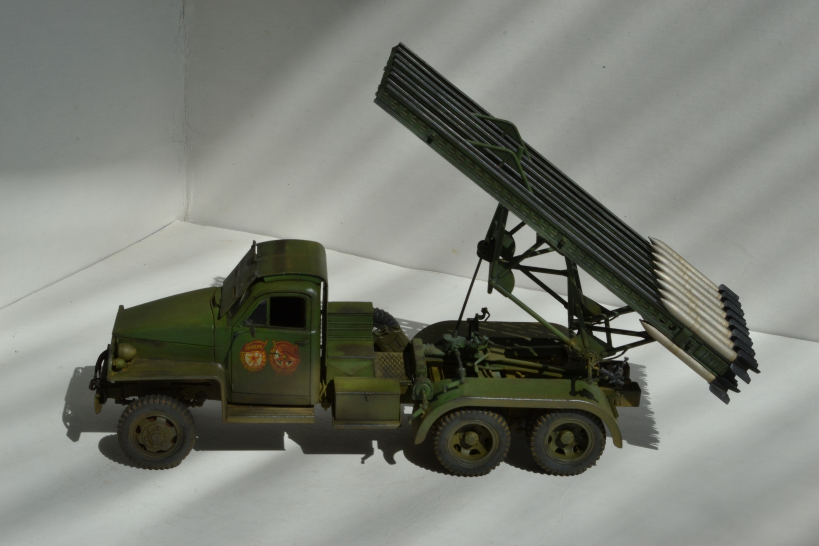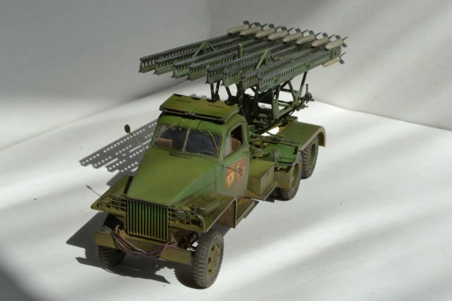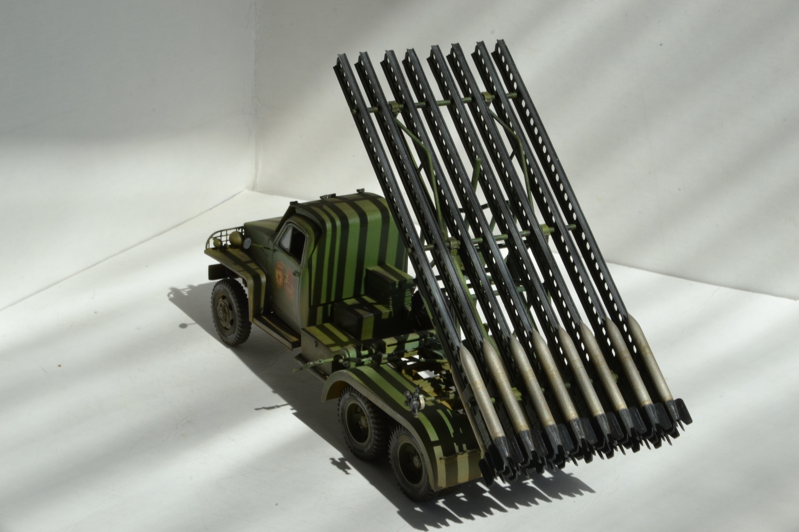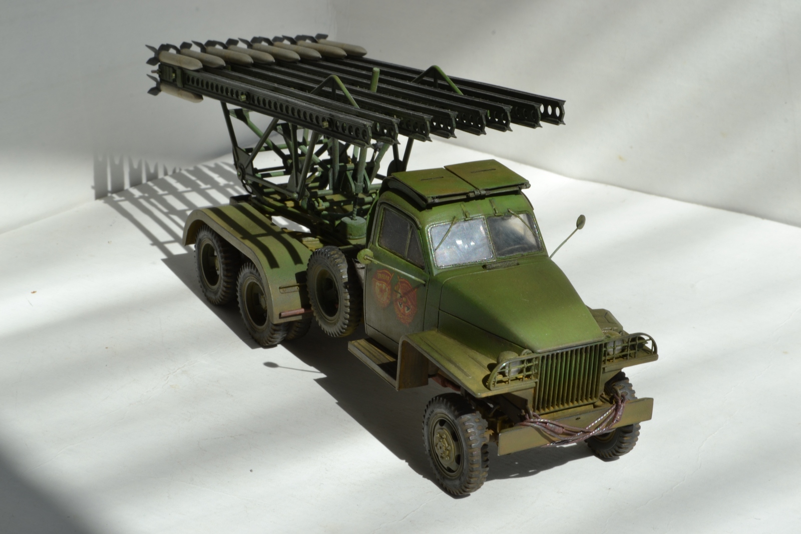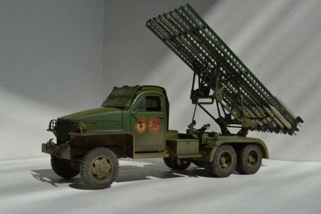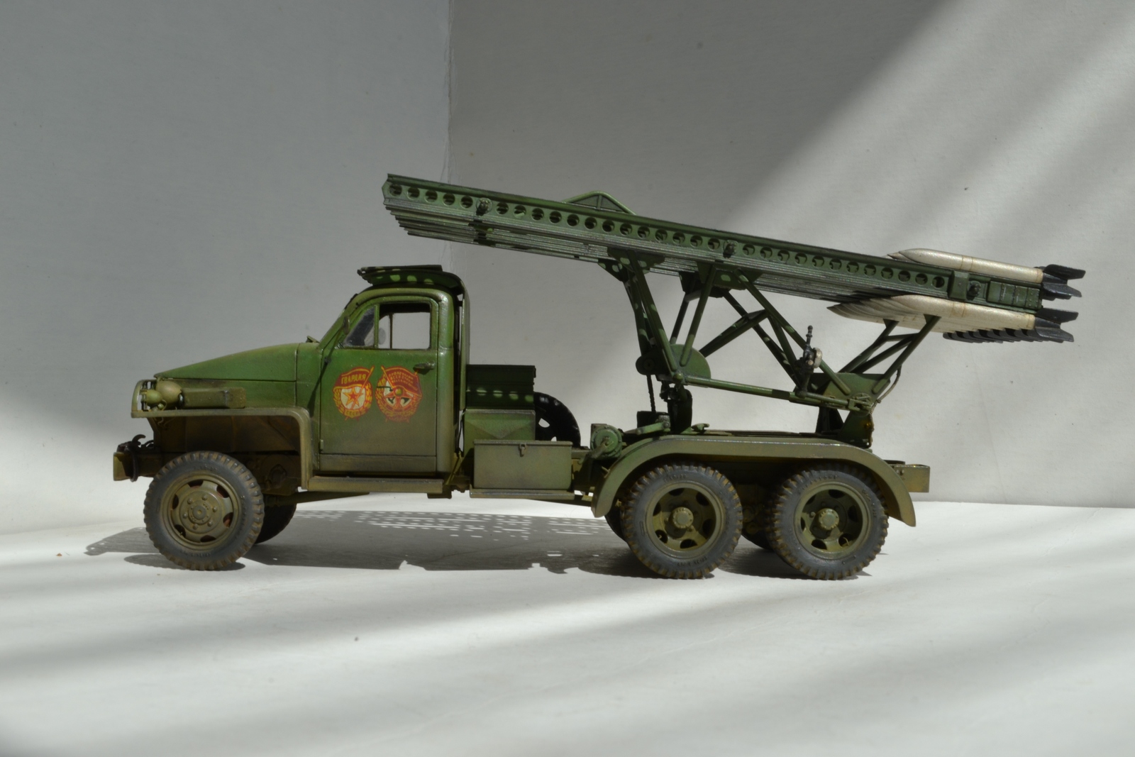Немного истории. После успешных испытаний в марте 1941г., 21июня1941г. была принята на вооружение БМ13 получившая прозвище "Катюша". Первый залп по врагу был произведён 14июля1941г. в 15ч.15мин. в районе Орши батареей реактивной артиллерии под командованием капитана И.А.Флёрова. С весны 1942г. реактивный миномёт устанавливался на ввозимые по ленд-лизу полноприводные шасси. Наиболее известным среди них стал Studebaker US-6/ C 1943г. БМ-13 получила индекс "Н" - нормализованная.