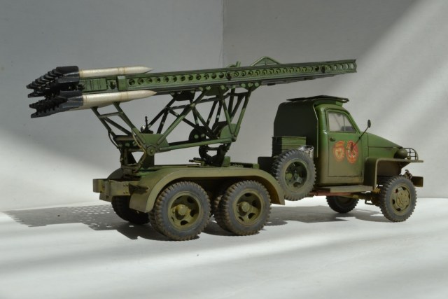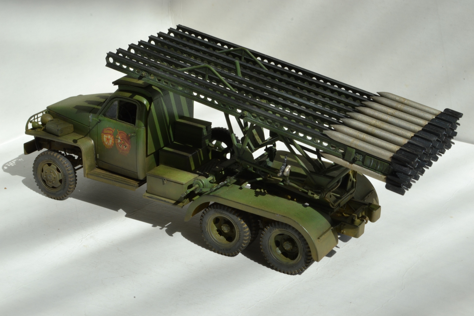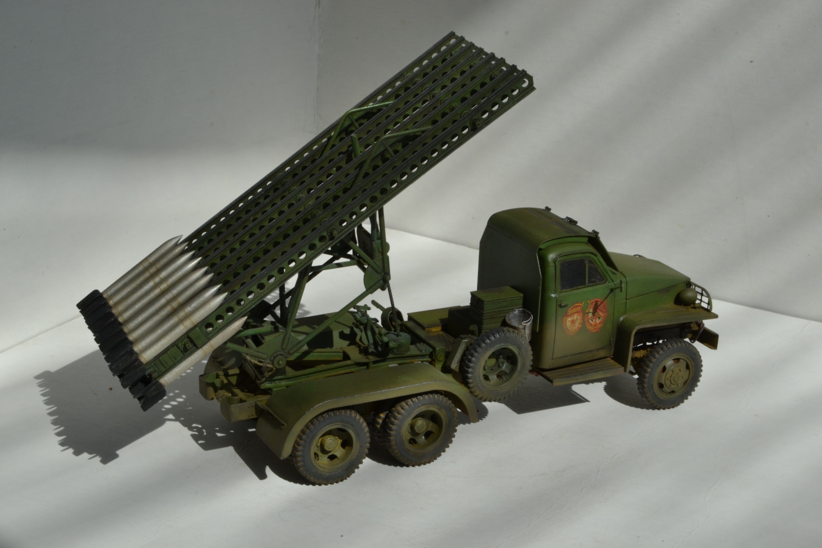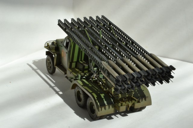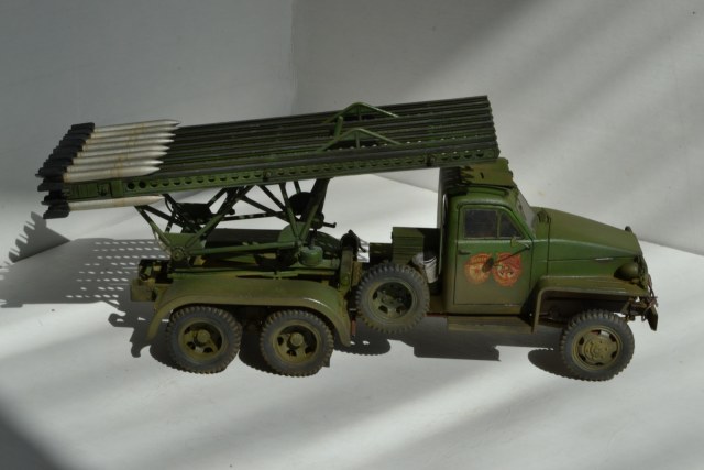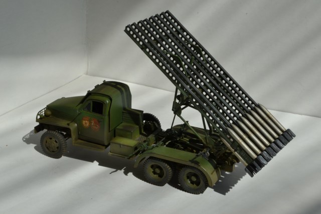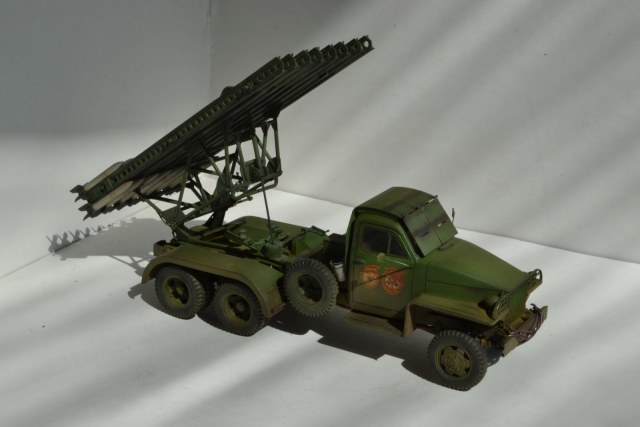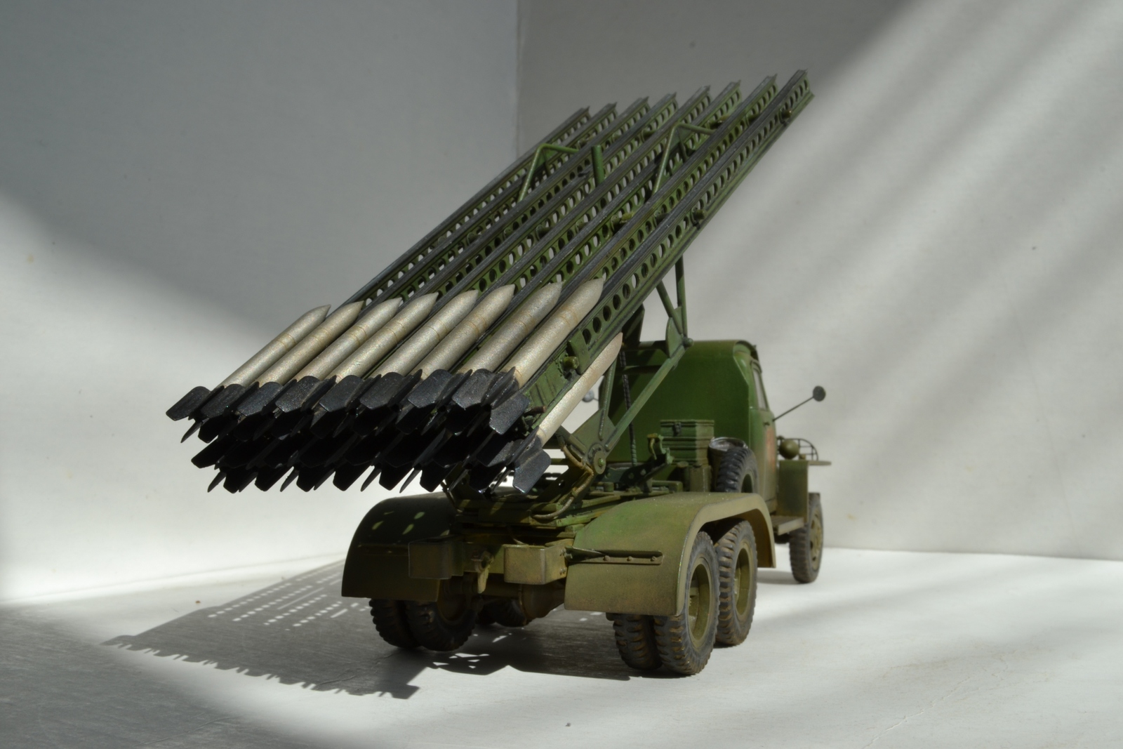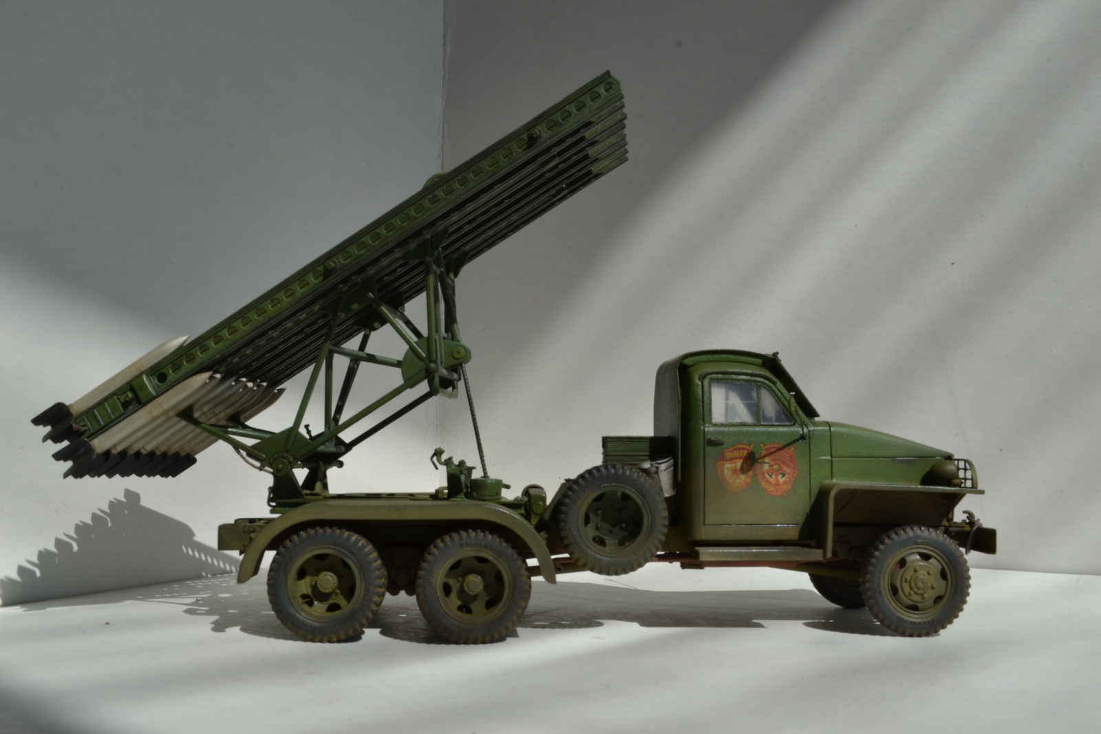 Немного истории. После успешных испытаний в марте 1941г., 21июня1941г. была принята на вооружение БМ13 получившая прозвище "Катюша". Первый залп по врагу был произведён 14июля1941г. в 15ч.15мин. в районе Орши батареей реактивной артиллерии под командованием капитана И.А.Флёрова. С весны 1942г. реактивный миномёт устанавливался на ввозимые по ленд-лизу полноприводные шасси. Наиболее известным среди них стал Studebaker US-6/ C 1943г. БМ-13 получила индекс "Н" - нормализованная.