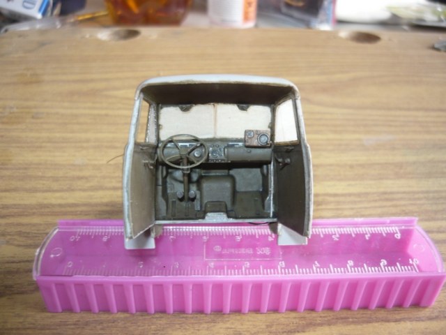 При нанесении пигментов(творческий процесс, однако)подразумевалась грязь(глина, нанесённая на дорогу гусеницами БТТ с полей и грунтовых дорог перепаханных взрывами снарядов) а не пыль(на вертикальных поверхностях таким слоем она не держится). Характер загрязнения, по моему мнению,соответствует движению со скоростью 50км\ч(плюс/минус)по мокрой дороге(дождь,туман,утренняя роса)и зависит от конструкции автомобиля. Время и место действия - апрель 1945г. окрестности Берлина(Берлинская наступательная операция). Может быть с цветом не угадал (хотя, грязь разная бывает и зависит от местности, а в Берлине не бывал и не знаю какая она там). И уж, если вопрос так принципиален, в конце концов, ведро за запаской, тряпка, я думаю, в кабине найдётся, помыть не долго(заодно под крыльями и по протектору потемнее сделать)