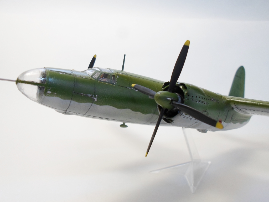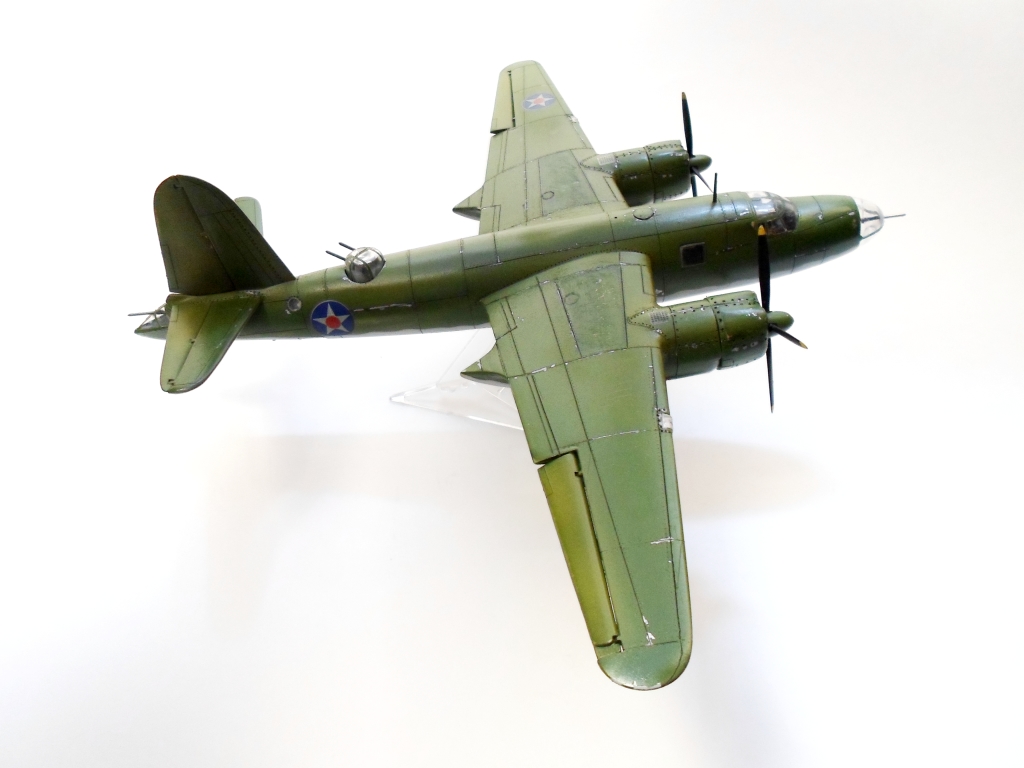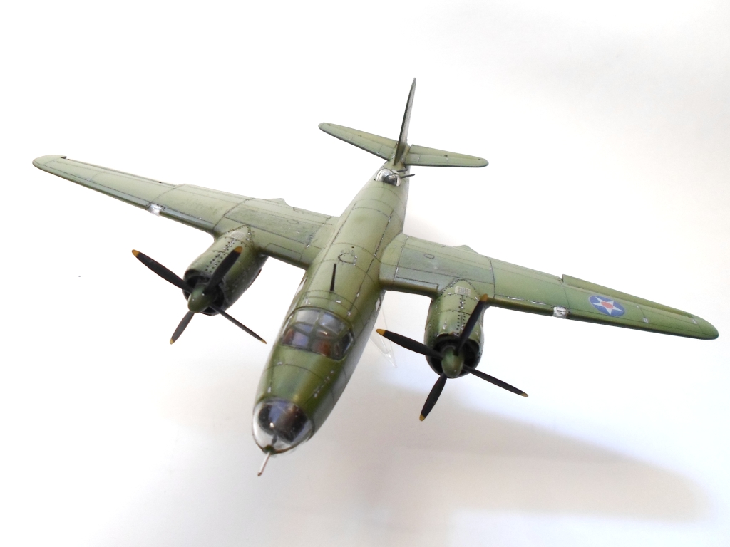 Приветствую коллеги! Решился я всё таки показать ВАМ то,что лет 5назад получилось у меня из тех дров которые предлагает фирма В.Э.,а раньше если не ошибаюсь FROG. По сути они предлагали модификацию В/С но много уж "но" при сборке.Покрутив,повертев и сверившись с прототипами и чертежами я решил что проще дальше по уродовать набор и в итоге получился вроде В-26А. Может мне повезёт и я куплю нормальную "ФАБРИКУ ВДОВ" от хасегавы. Переделал собственно капоты,добавил коки(носовая часть от колпачков шариковой ручки),чуть поигрался с килем и основное,это задняя стрелковая точка.Из за неё чуть было не отправил "дрова" в топку.На шасси ( костылики ) ставить не стал. Марадёр КРАСИВ и в полёте и на земле.По расшивке много погрешностей,знаю.Эта модель одна из многих моих,которые я собирал по неопытности и спешке.За сим прошу к обсуждению.